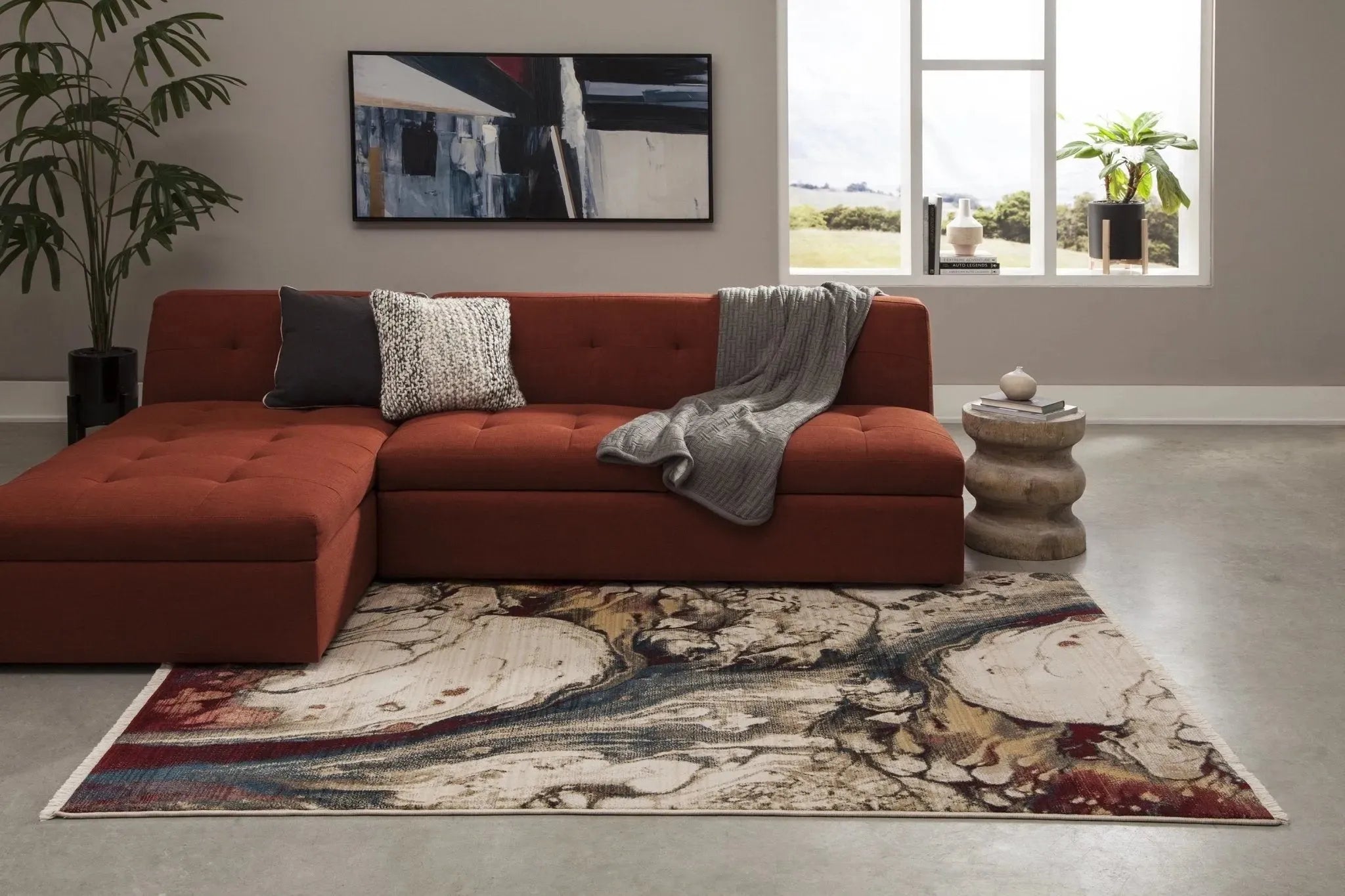The painterly style of this modern area rug collection derives design inspiration directly from the artist's palette. Each contemporary rug is every bit the non-traditional accent piece with uninhibited movement and abstract patterning inspired by the organic flow of paint on canvas. Polypropylene fibers feature beautifully saturated shades of brilliant red, blue and beige that bring interior floors a primary spectrum of swirling and striated pigment. This rug is perfect for your living room, dining room, den, bedroom, or any living space