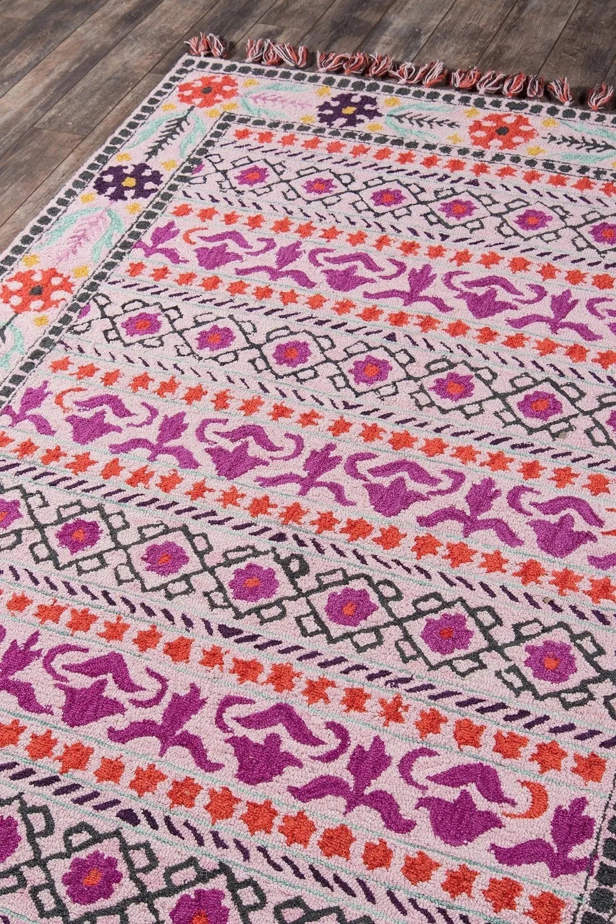 Southwestern motifs get a modern edge in the graphic design elements of this decorative area rug. Available in a stunning array of tribal patterns, each floorcovering features a geometric repeat inspired by iconic tribal prints. Diamonds, crosses, medallions and stars form repeating stripes and intricate linework while tassels at the top and bottom of the rug accentuate the exotic vibe of the with a fun, fringed border. Exceptional in style and composition, each rug is han This rug is perfect for your living room, dining room, den, bedroom, or any living space