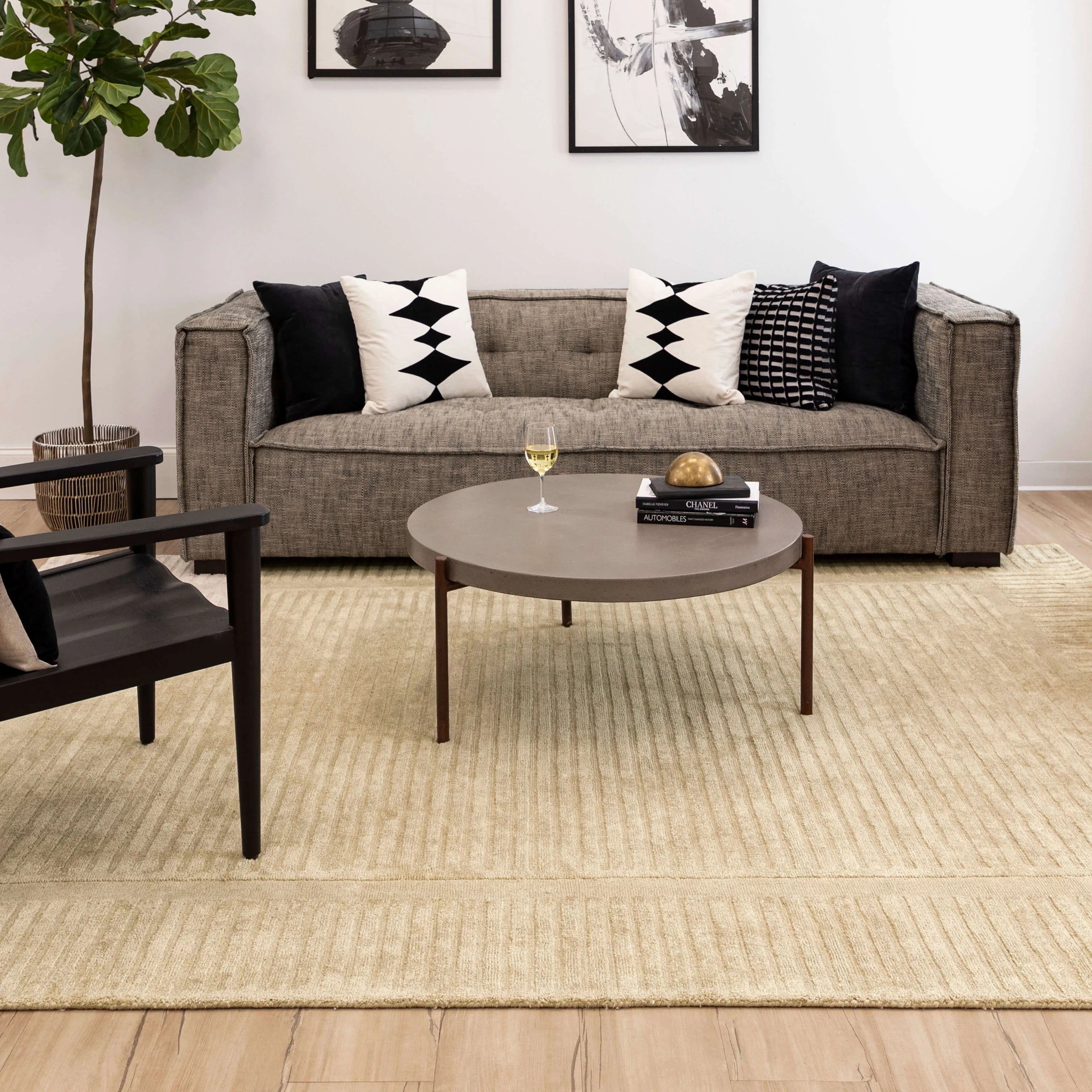 The Bobby Berk Broken Terra Firma Area Rug Collection features a modern geometric inspired striped design in a variety of versatile colors that adds exquisite style to any space. Machine made with a premium viscose, polyester, and wool fiber blend; this area rug collection features a subtle high/low pile that makes a bold statement in every room. The resilient fiber offers sumptuous softness and rich colors with dependable durability designed to thrive even in high traffic areas. Available in scatters, runners, and other popular sizes such as 5x8 and 8x10, this area rug collection is a great choice for adding style to a variety of spaces in your home.