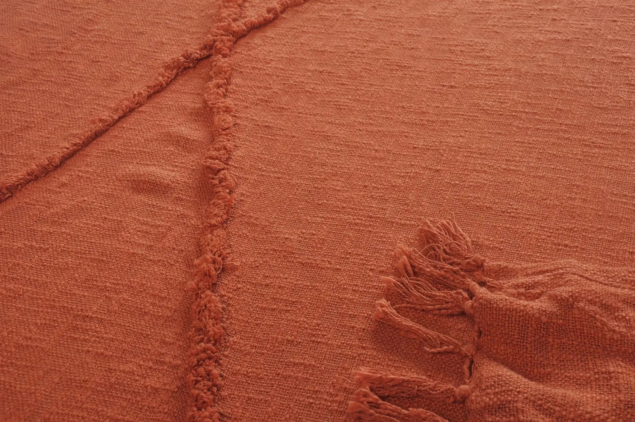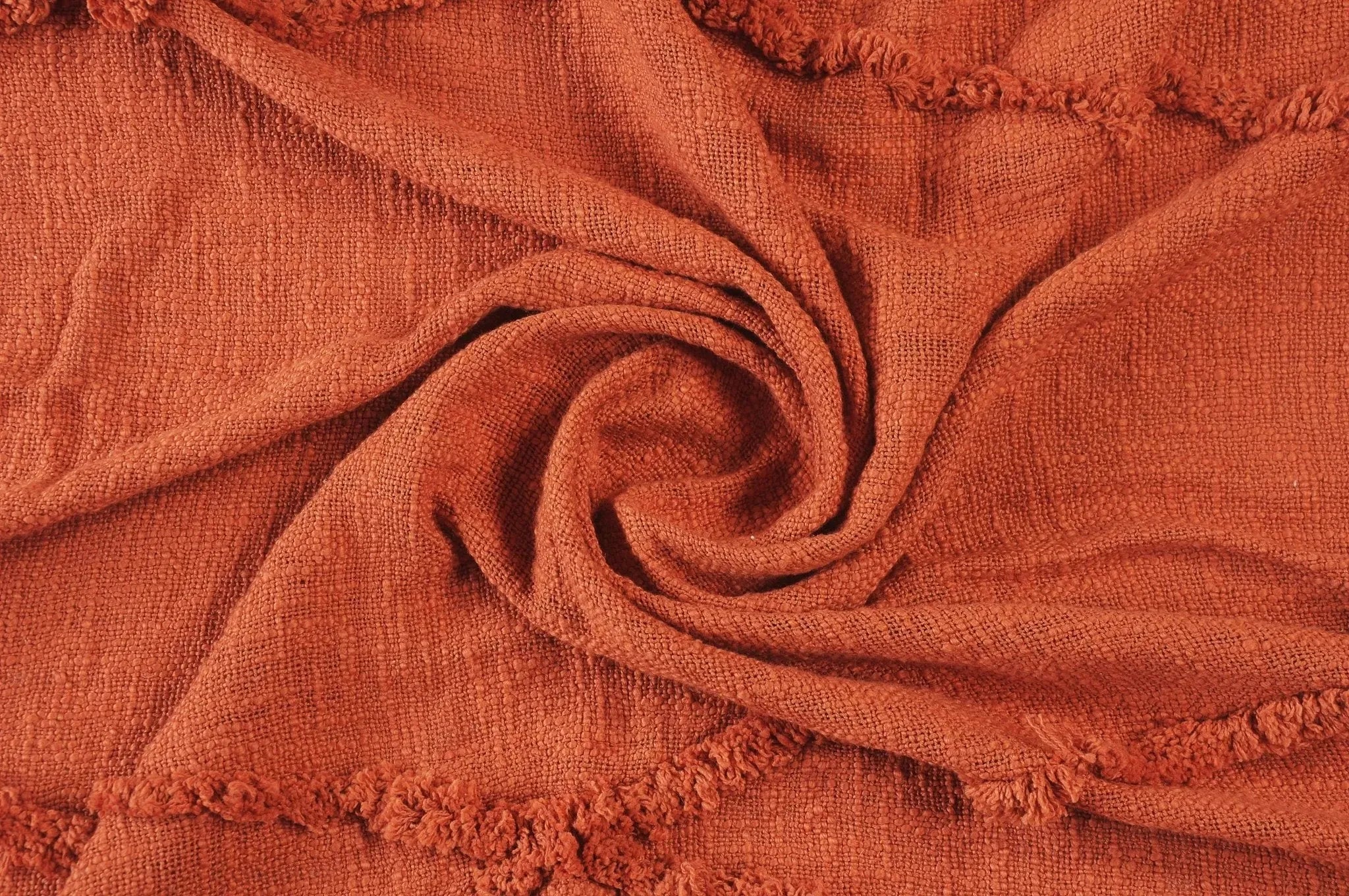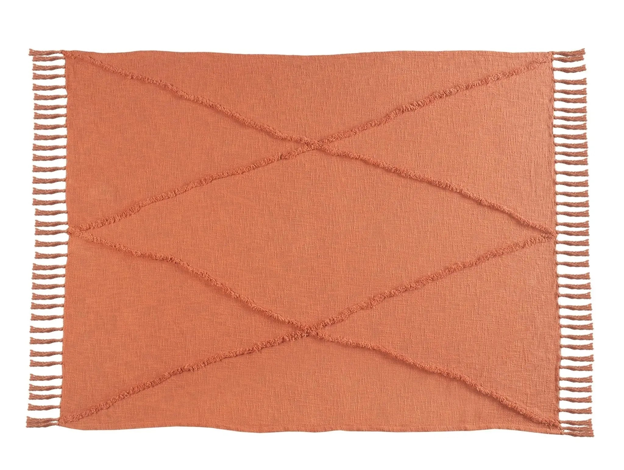 Come get cozy with your new favorite throw blanket! With your new addition, it is quite tempting to stay at home all day. Even if you can't, you can still enjoy the view of your new throw blanket placed over a chair, folded onto the couch, or spread onto the bed. If a comfy and homey look is what you are going for then this is the throw for you! The well-toned terracotta clay coloring goes well with a variety of different home decor themes. The tufted and tasseled features also give this blanket an eye-catching texture. No matter the season, there is always time to relax and snuggle up with this new addition to your home.