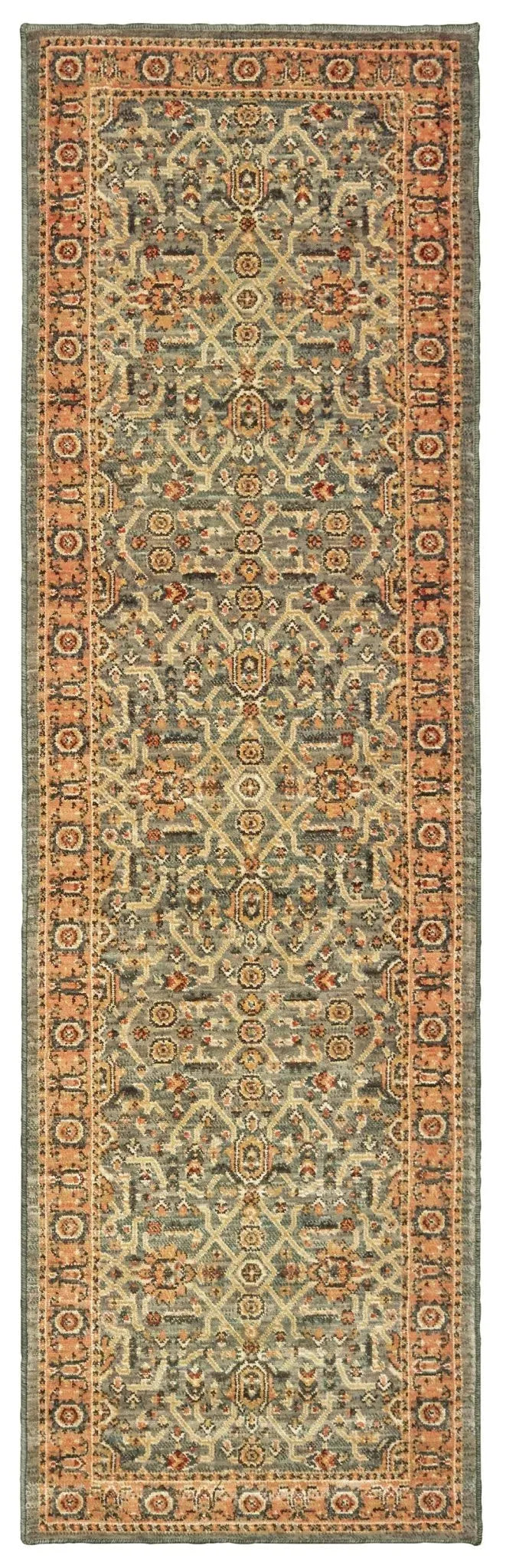 Toscana is a new, more authentic take on the bohemian trend that focuses on capturing the beauty and charm of vintage carpets through updated traditional styling and unique color combinations. Warm neo-traditional shades of saffron, coral, bright apricot and blood orange are contrasted by smoky teal, ash blue, charcoal and oatmeal shades. Toscana is machine-woven in a high density durable construction of a space-dyed nylon/polypropylene blend of yarns.