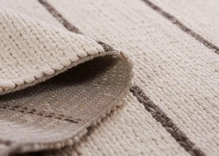 Each rug has a hand-crafted appeal that enhances the cozy and casual nature of the construction. Incorporating the perfect blend of wool, viscose and cotton, for an unexpected softness. The accent colors in the stripes are slightly textured, to complement the organic, yet comfortable aesthetic of each rug.