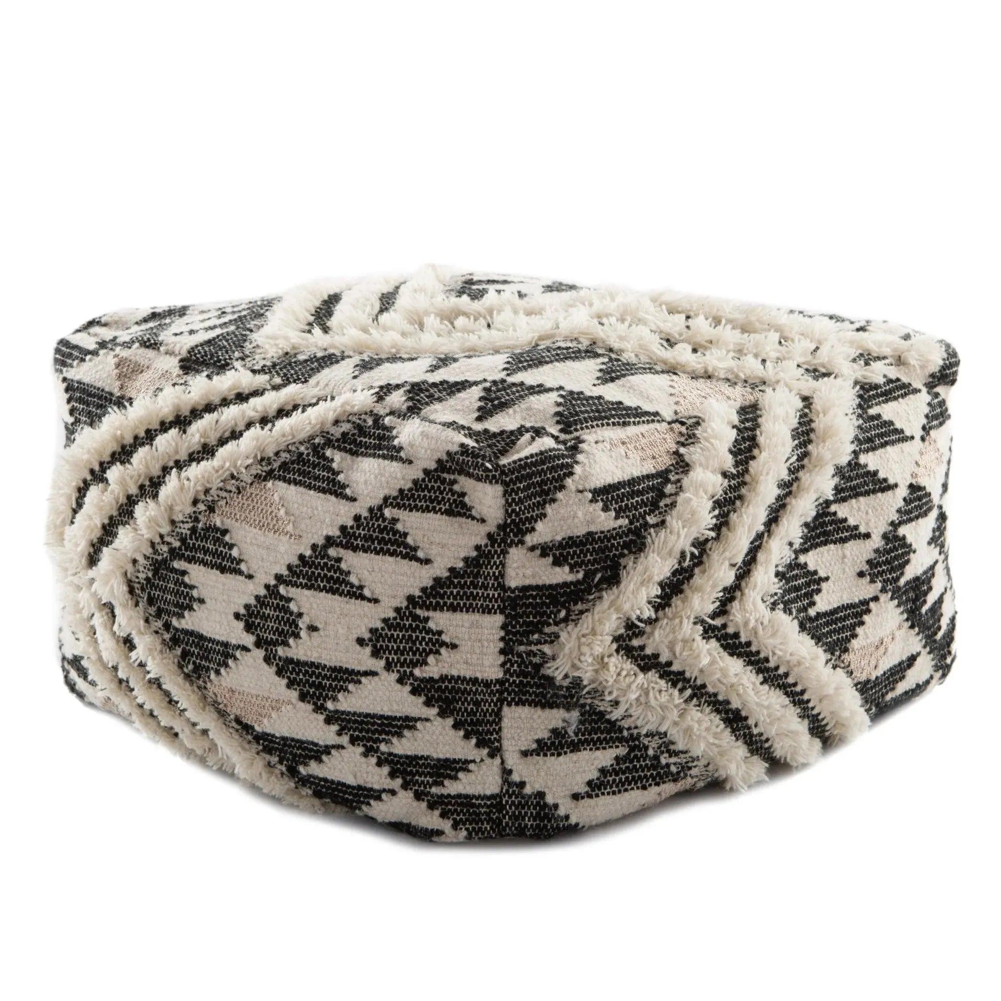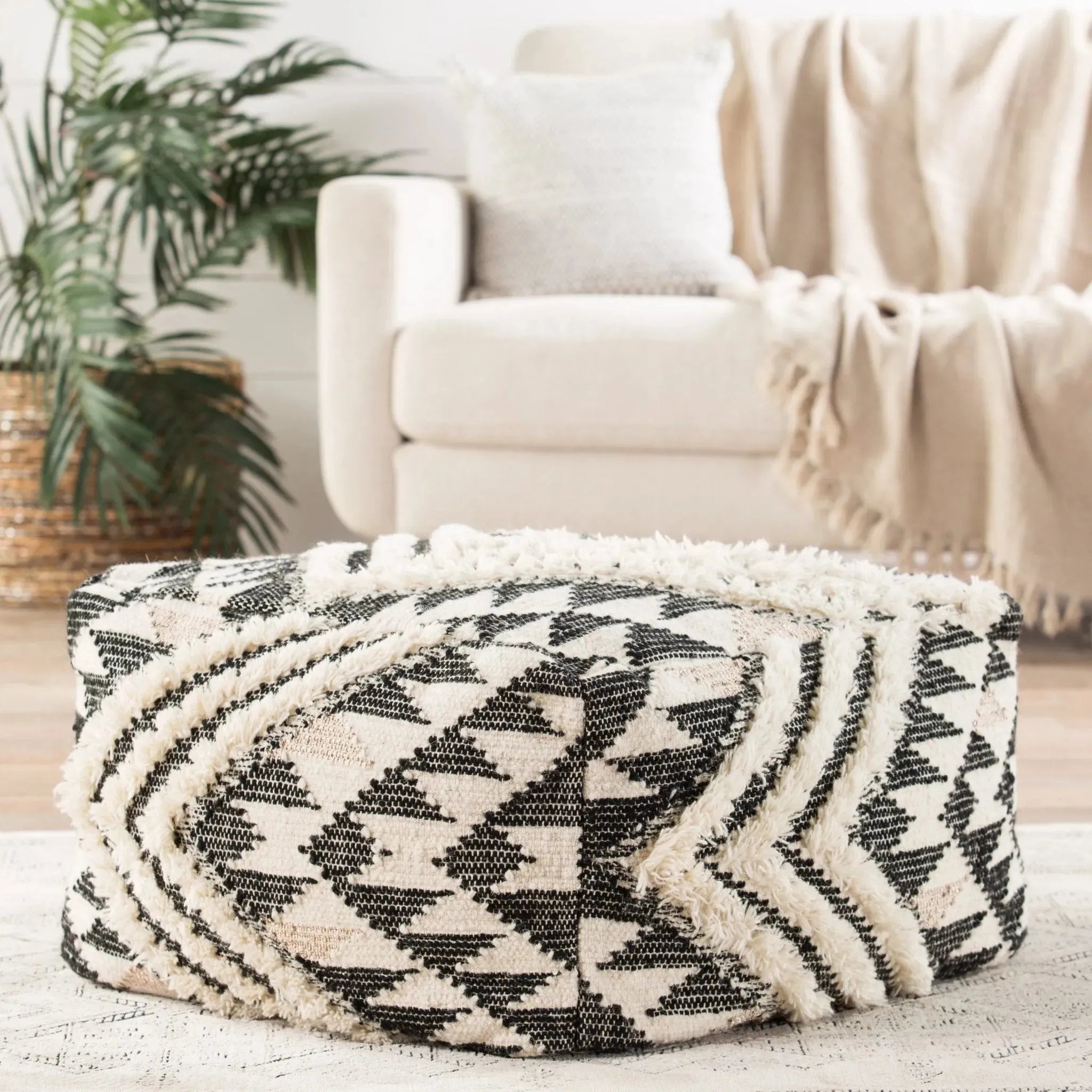 The Ultra collection designed by Nikki Chu brings bohemian charm to contemporary homes. The Nomadic pouf draws texture inspiration from traditional kilim rugs, adding a hint of glamour with the metallic, blush triangular accents. Crafted of wool, this chic ottoman offers a whimsical and worldly look to any living space.