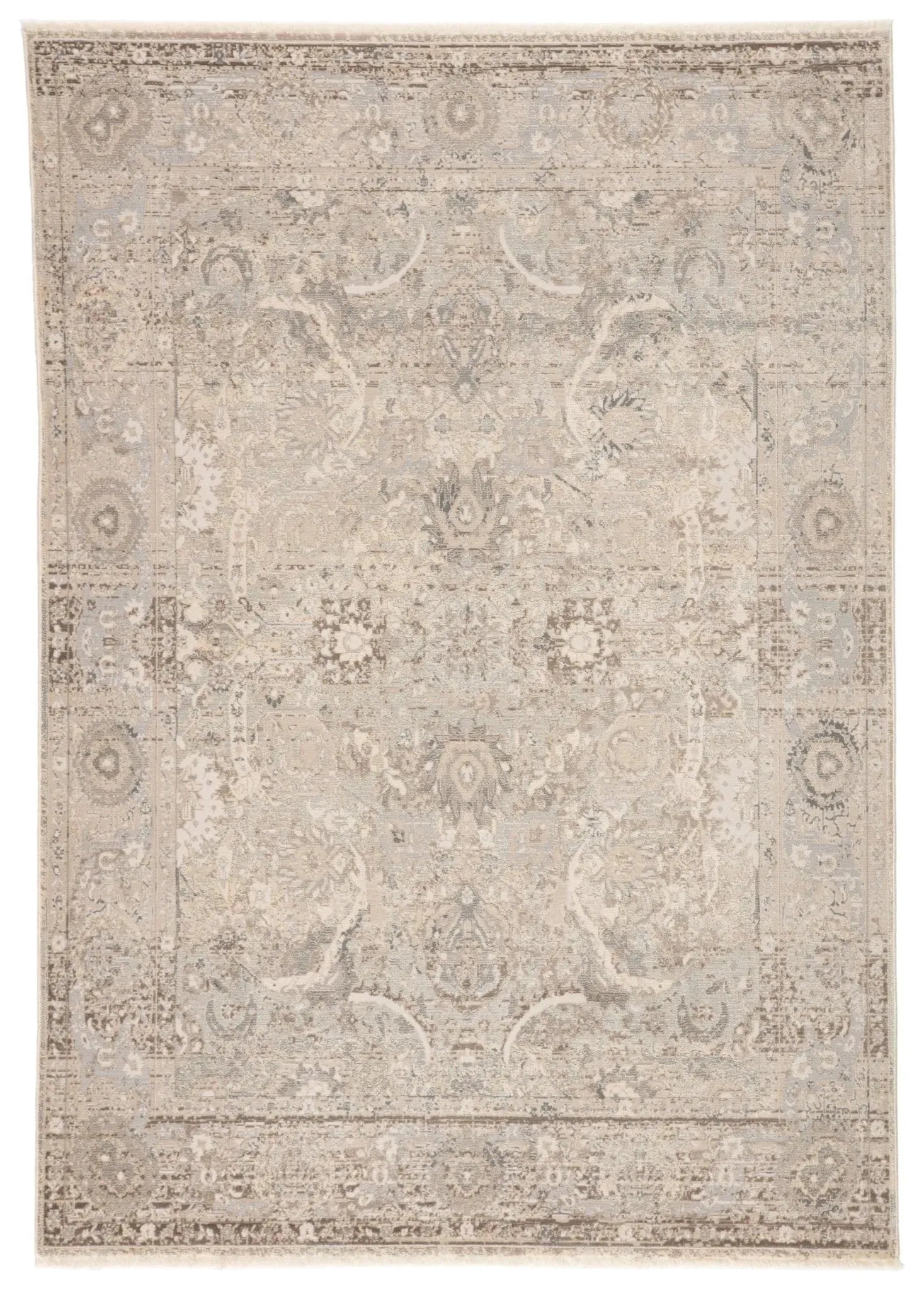The elegant Vienne collection showcases the on-trend blanc de blanc look for an effortless and luxuriously vintage statement. The Baptiste rug boasts a distressed floral medallion motif in light tones of cream, taupe, metallic silver, and gray. Soft and lustrous, this chameleon-like design emulates the timeless style of a Turkish hand-knotted rug, but in an accessible polyester and viscose power-loomed quality.