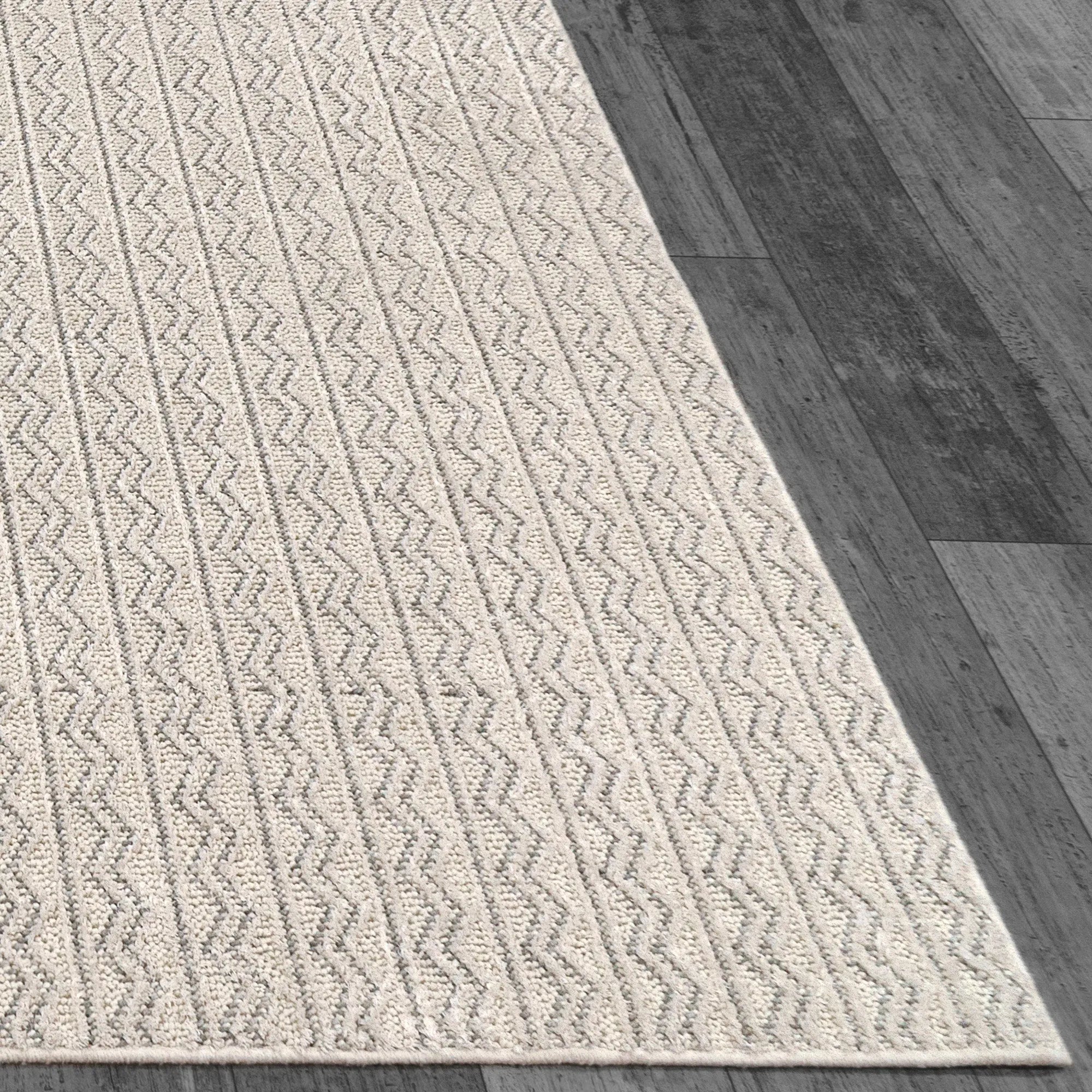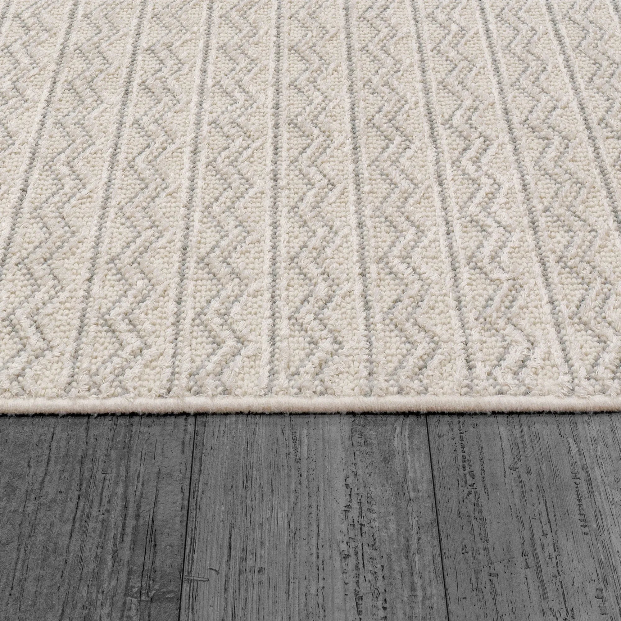 Vuna brings a modern touch to your living space with its striped and chevron patterns. This refreshing design choice adds a contemporary and visually dynamic element to the overall aesthetic of the room. Despite being machine-made in Turkey from polyester, Vuna exhibits a handmade-like construction, providing a sophisticated feel to your living space at an affordable price point. This blend of craftsmanship and affordability makes Vuna an attractive choice for those seeking both style and value. The neutral tones of ivory, cream, and grey in Vuna contribute to a sophisticated and versatile color palette. This combination not only adds elegance to the room but also allows for easy integration with various decor styles, ensuring a timeless and cohesive look.