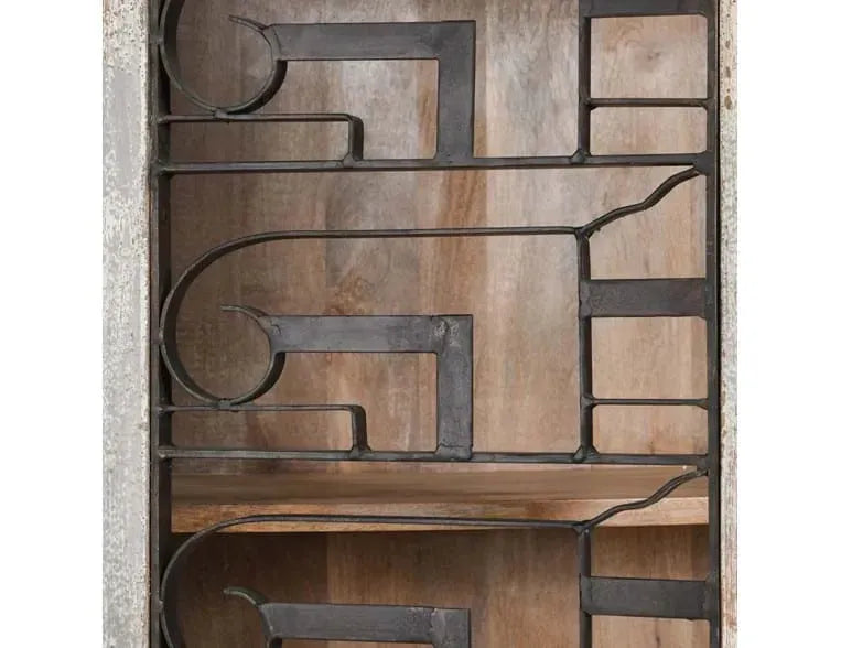 Bring character to your home with our reclaimed wood and iron bar almirah. Its spacious shelves and detailed ironwork make it a perfect blend of functionality and rustic charm. Designed to stand out, it effortlessly becomes the centerpiece of any room.