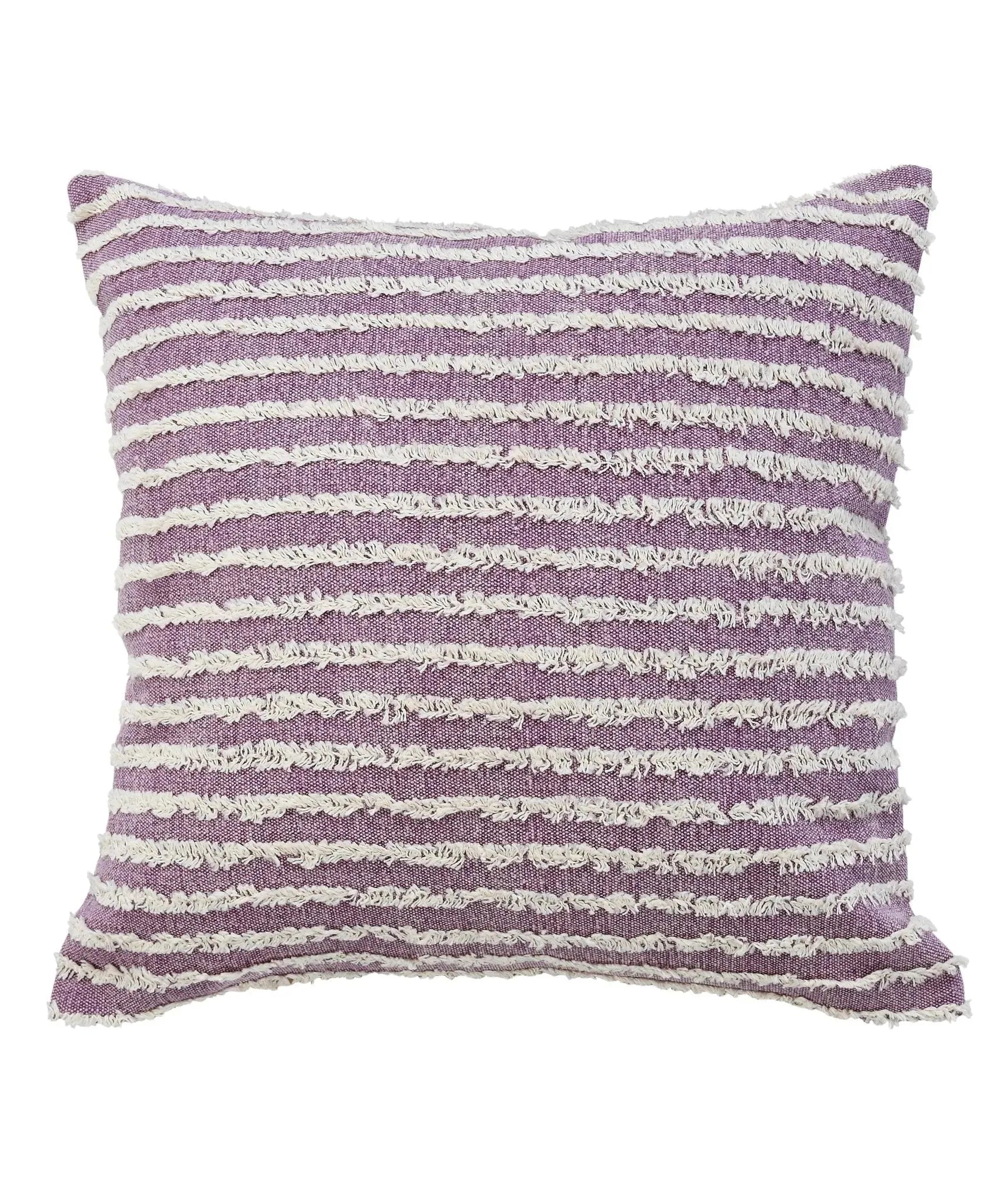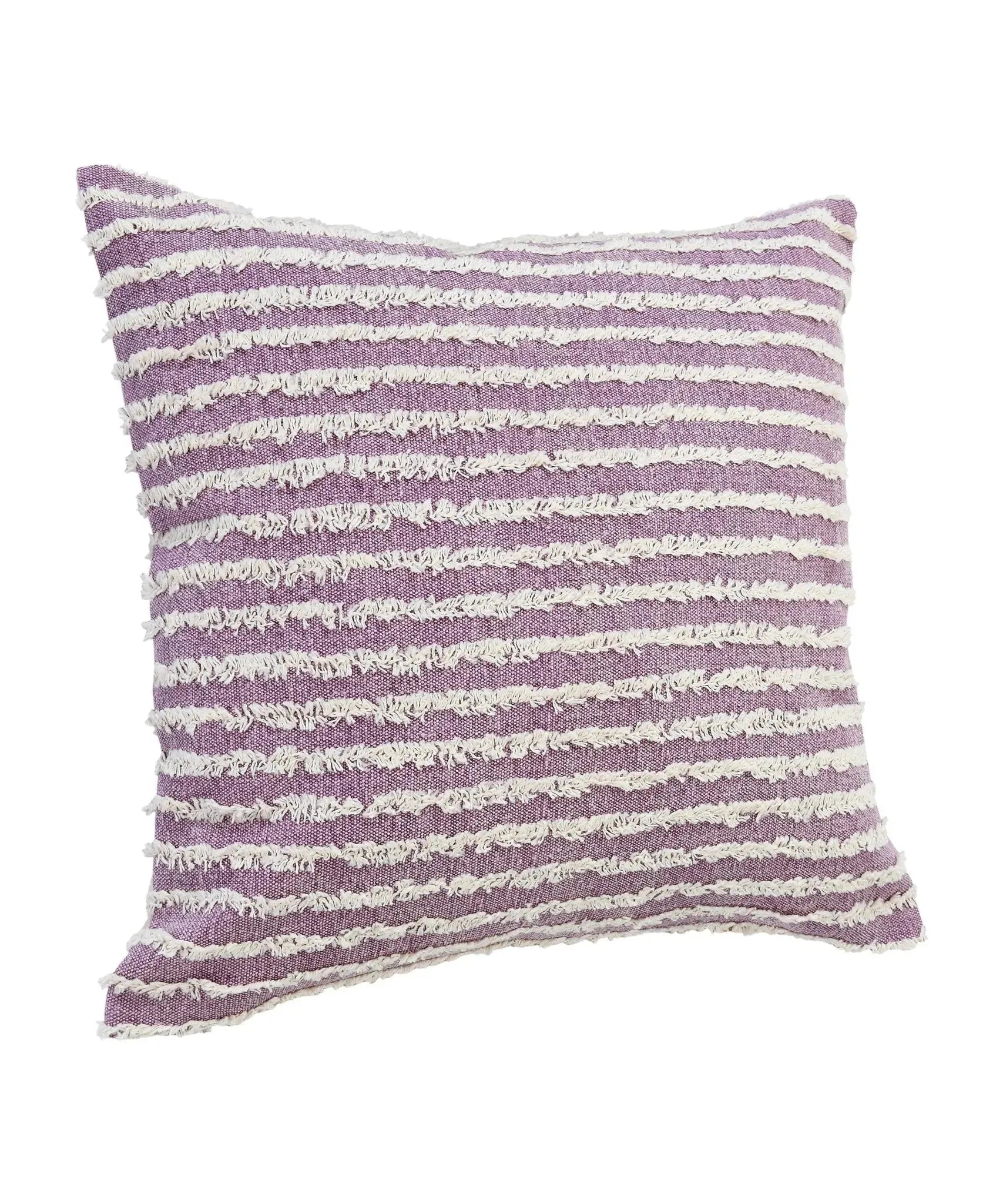 The Wispy Ways pillow collection boasts whimsical textures in a variety of colors and sizes. These unique accents bring playful energy into your space while remaining stylishly chic. This piece features short tufted horizontal stripes atop a stonewash lavender purple backing. This well-balanced creation exudes calming neutral energy to easily coordinates various home styles and themes. Place this accent in a bedroom, living space, kid's area, or entryway for eye-catching style and endless compliments. Handcrafted with the customer in mind, there is no compromise of comfort and style with the pillow line we create.