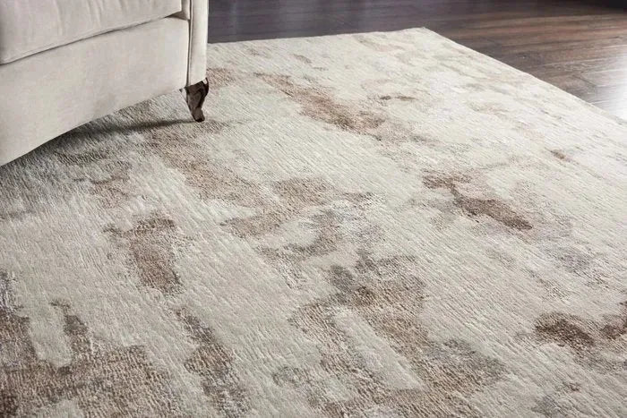 Deep mink and truffle detailing create a harmonious feel in this wool linen silk bamboo blended rug.åÊ