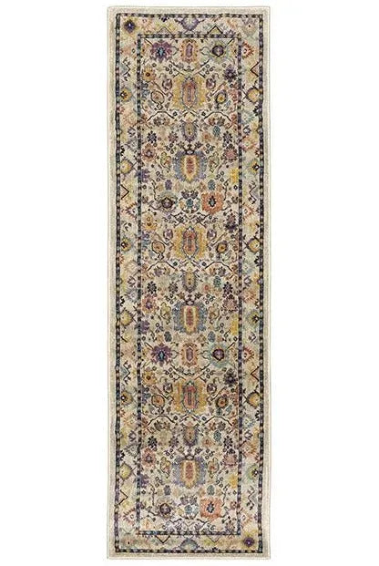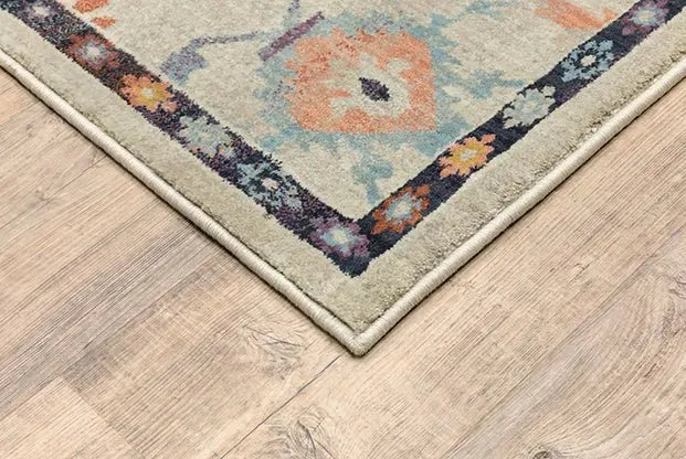 The Parisa PSA06 Denim/Multi Rug comes in various sizes, including 2x10, 5x7, 8x10, 8x11, 9x13, and 12x15 feet, accommodating different room dimensions.