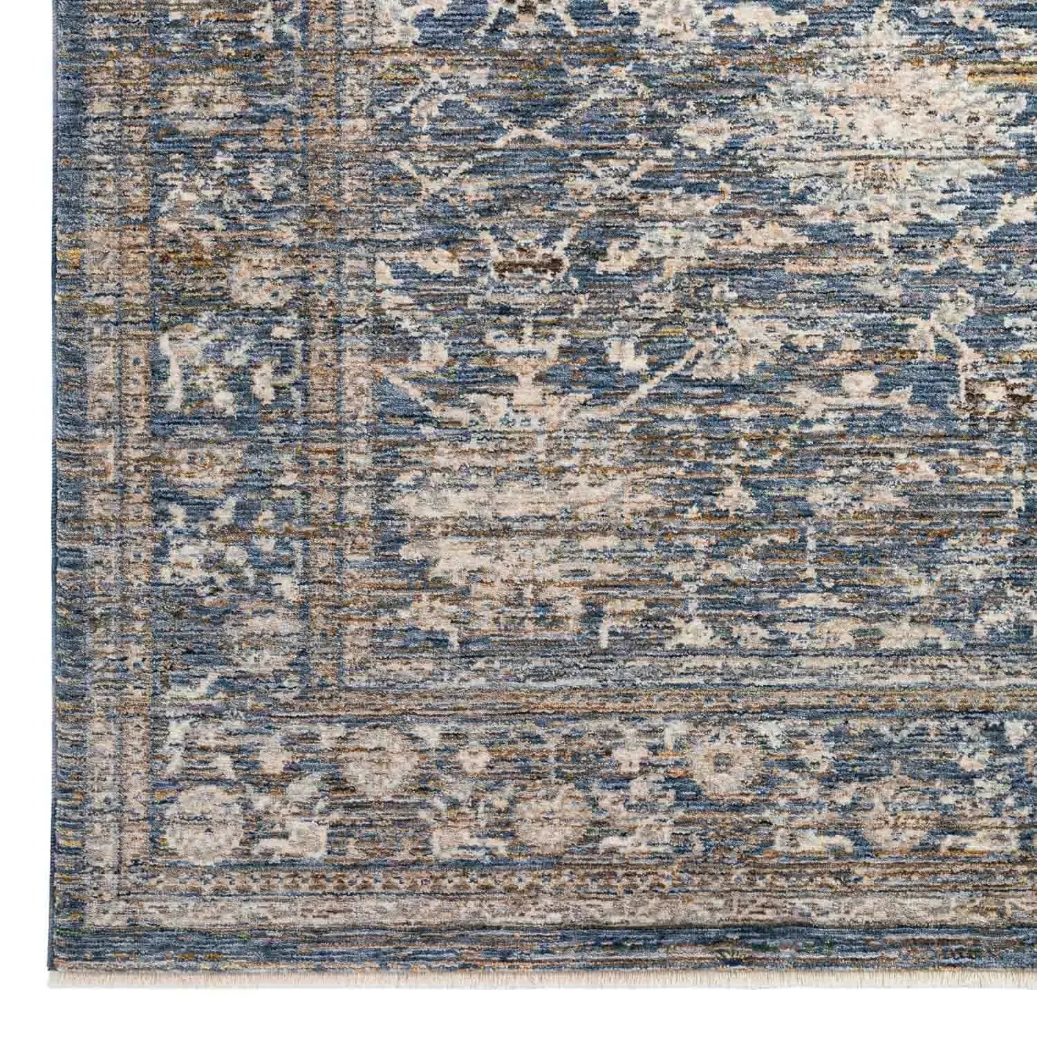 The Parisa PSA06 Denim/Multi Rug comes in various sizes, including 2x10, 5x7, 8x10, 8x11, 9x13, and 12x15 feet, accommodating different room dimensions.