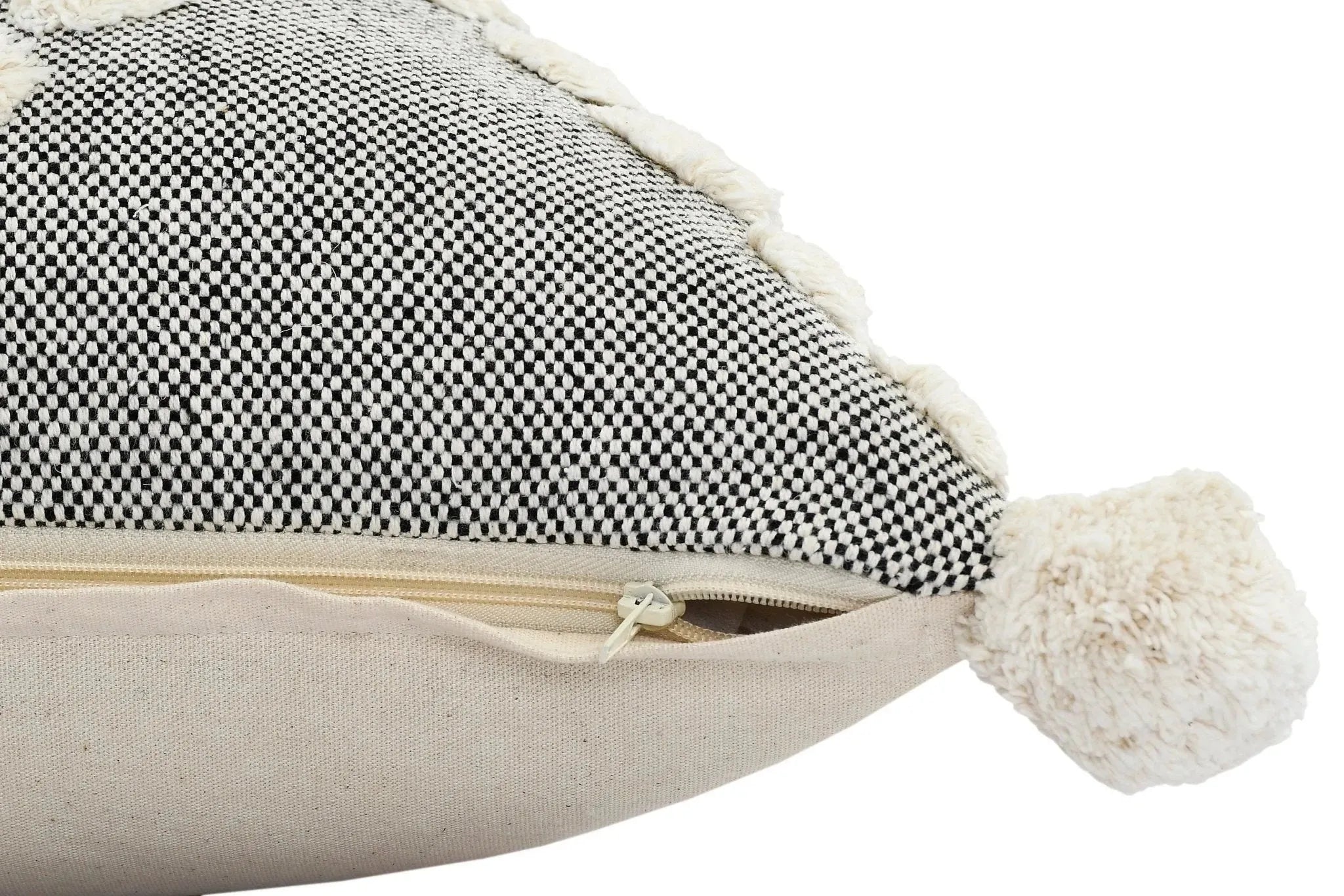 Replenish your soul in nostalgic joy with our Zeal Collection! This collection offers soft, plush textures with playful bohemian vibes. This accent pillow features a charming cotton velvet swiss cross design with over tufted pom poms in a zig-zag motifs. This warm and inviting accent displays a coordinating contemporary mix of gray, burnt orange, soft pink, and cream that will enhance your home's vibrancy. Place this accent in a bedroom, living space, kid's area, or entryway for eye-catching style and endless compliments. Handcrafted with the customer in mind, there is no compromise of comfort and style with the pillow line we create.