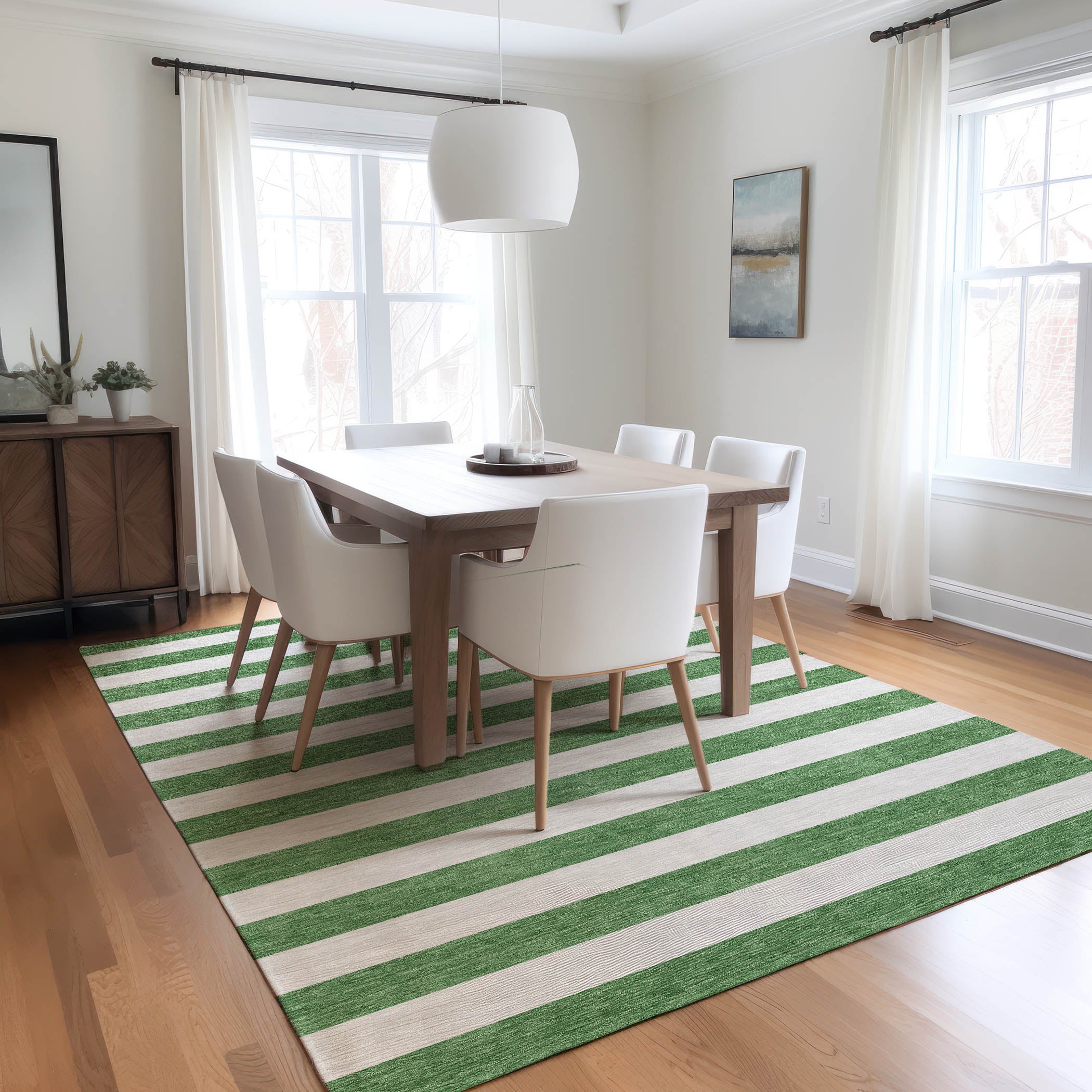 Revitalize your space with our area rug, featuring bold thick cabana lines that add a sense of energy and visual interest. This transitional striped rug is a statement piece that captures attention. With UV stabilization, it can be confidently used indoors or outdoors, offering versatility in placement. The ultra-thin construction includes an incorporated non-skid backing, providing stability and eliminating the need for a separate rug pad. It's machine-washable and designed to be family and pet-friendly, ensuring easy maintenance.