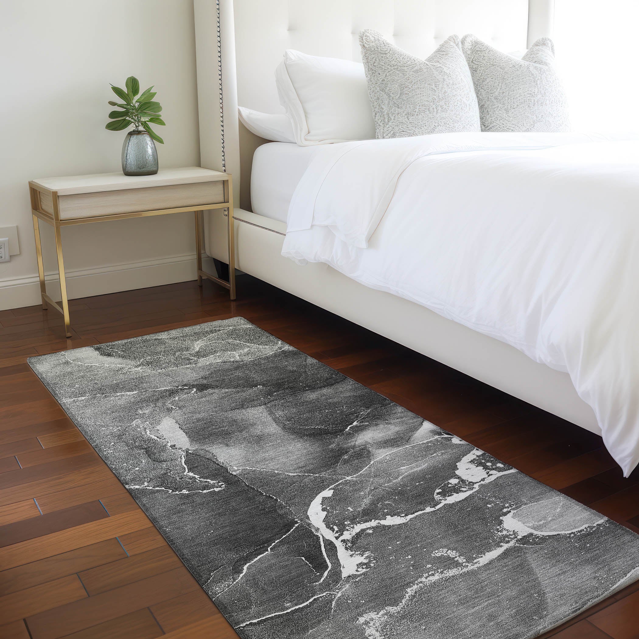 Enrich your living space with our contemporary area rug, featuring a stunning shattered glass effect that creates a modern art pattern. The watercolor theme enhances its aesthetic appeal, making it a centerpiece in any decor. UV stabilized for indoor or outdoor use, and with an ultra-thin construction that includes a non-skid backing, it eliminates the need for a separate rug pad. It's machine-washable and family and pet-friendly, making upkeep a breeze.