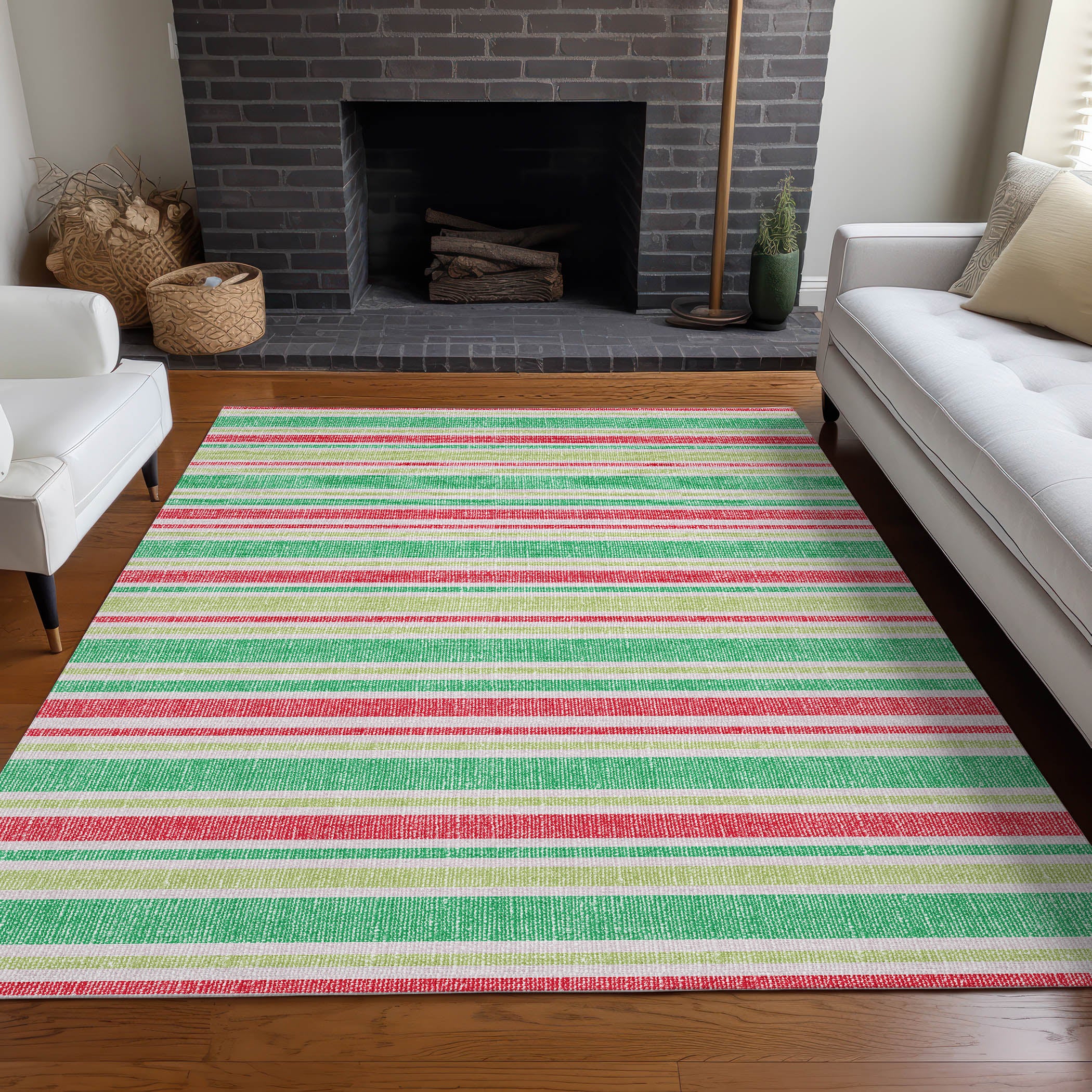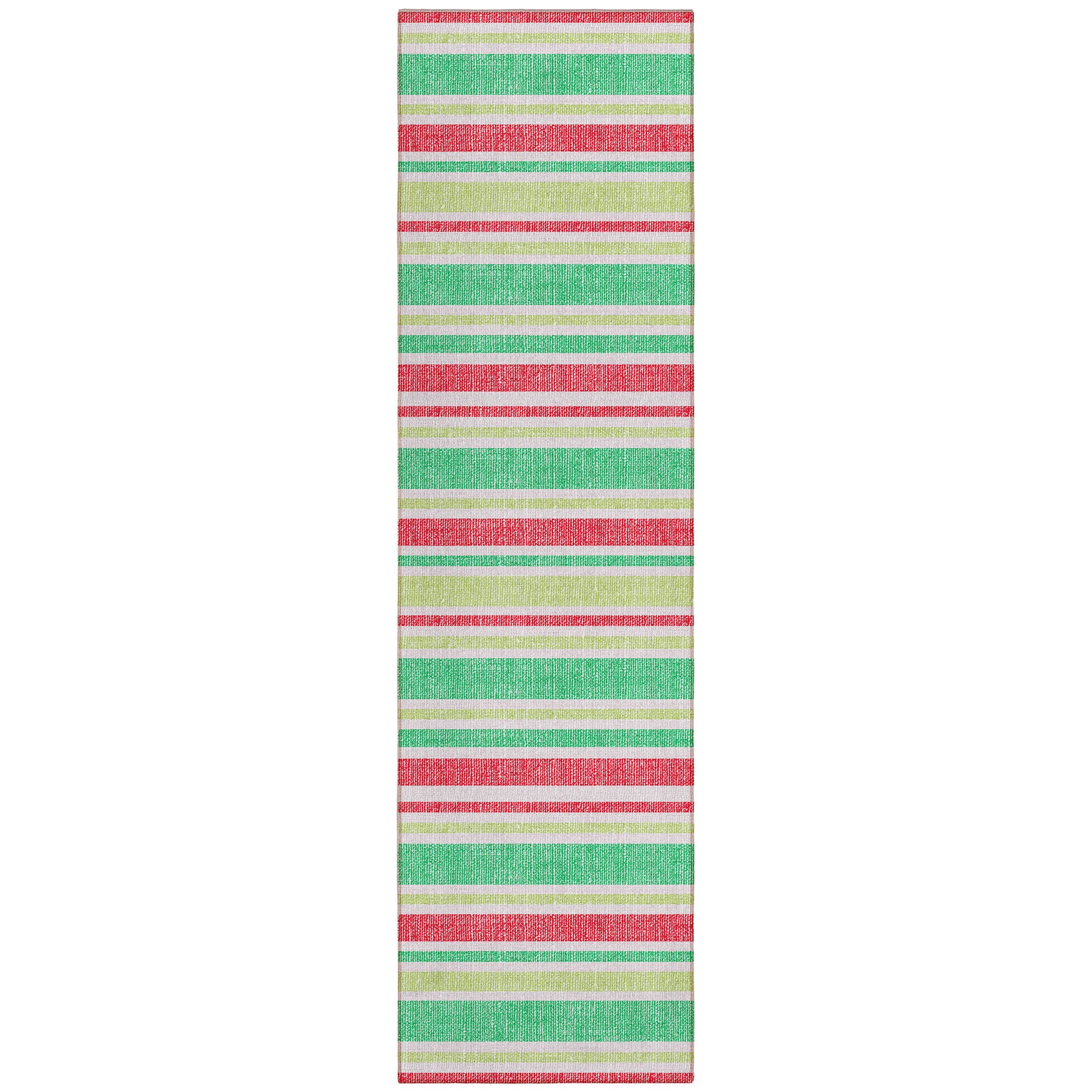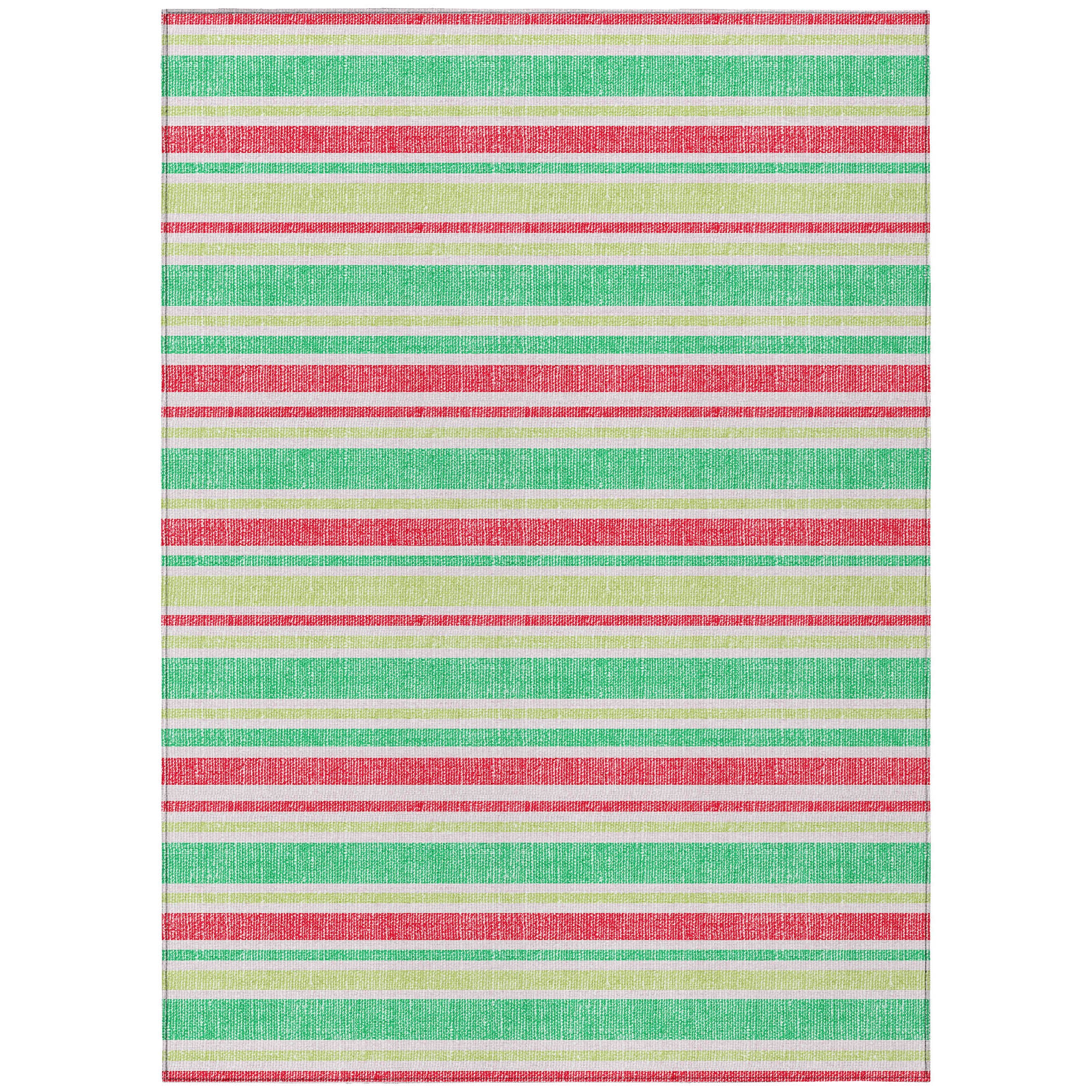 Make a bold statement in your space with our area rug featuring stripes that offer complementing colors to catch the eye and add energy to the room. This transitional striped rug effortlessly enhances any décor. It is UV stabilized for indoor or outdoor use, and its ultra-thin construction with an incorporated non-skid backing eliminates the need for a separate rug pad. Machine-washable and family and pet-friendly, this rug offers convenience and versatility.