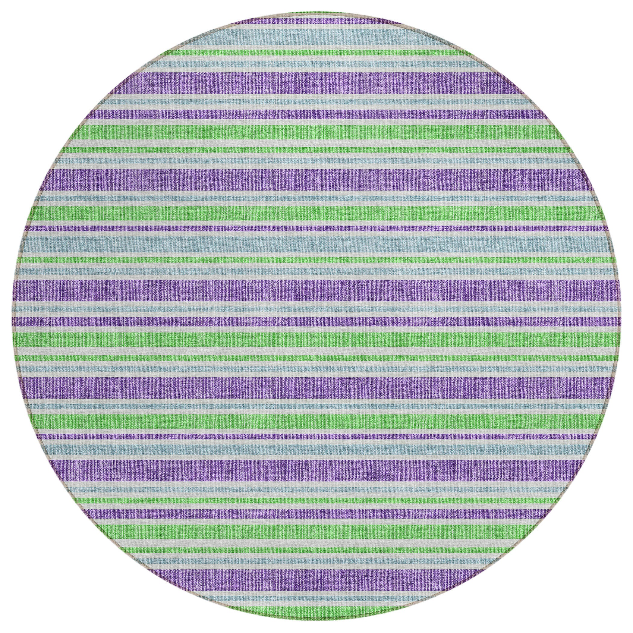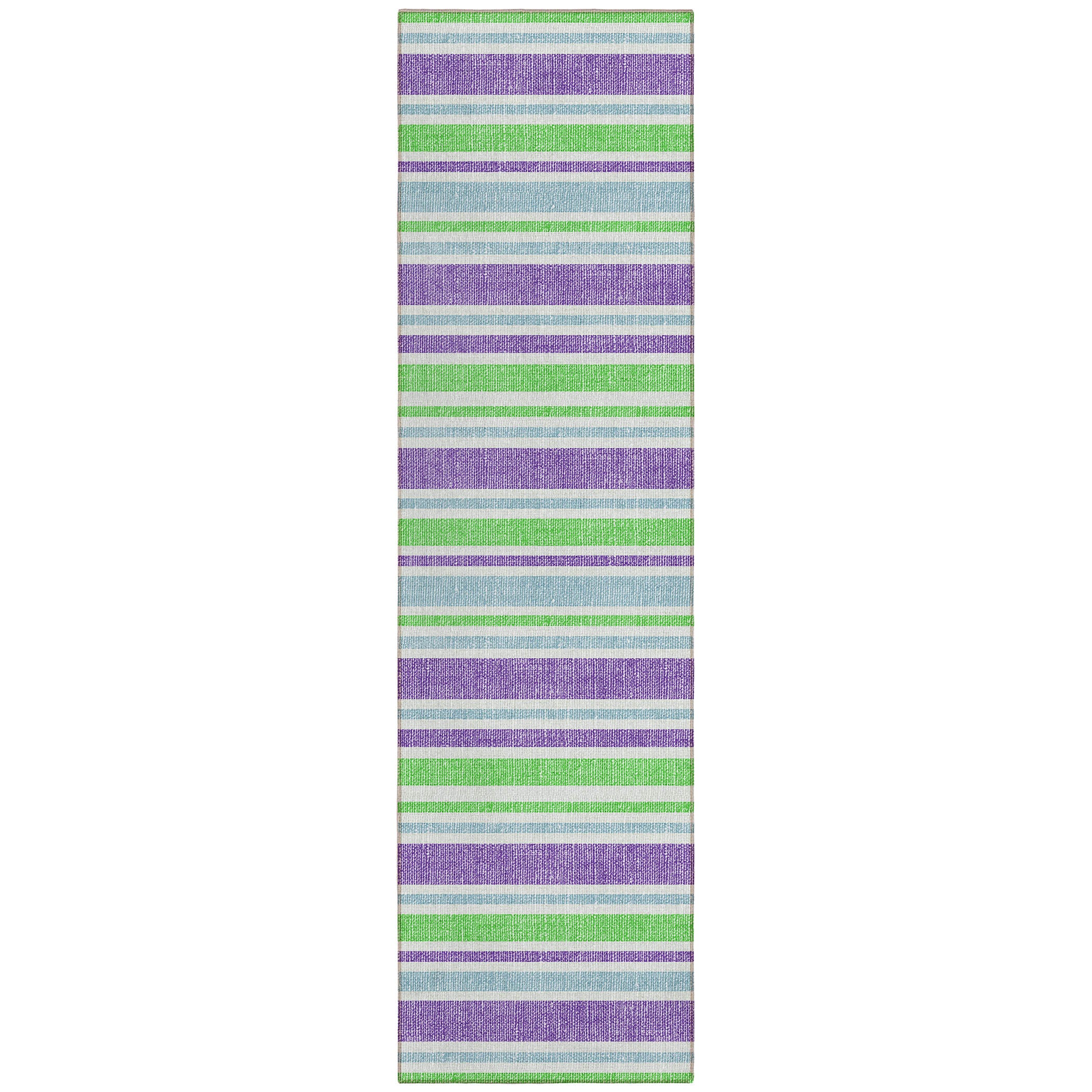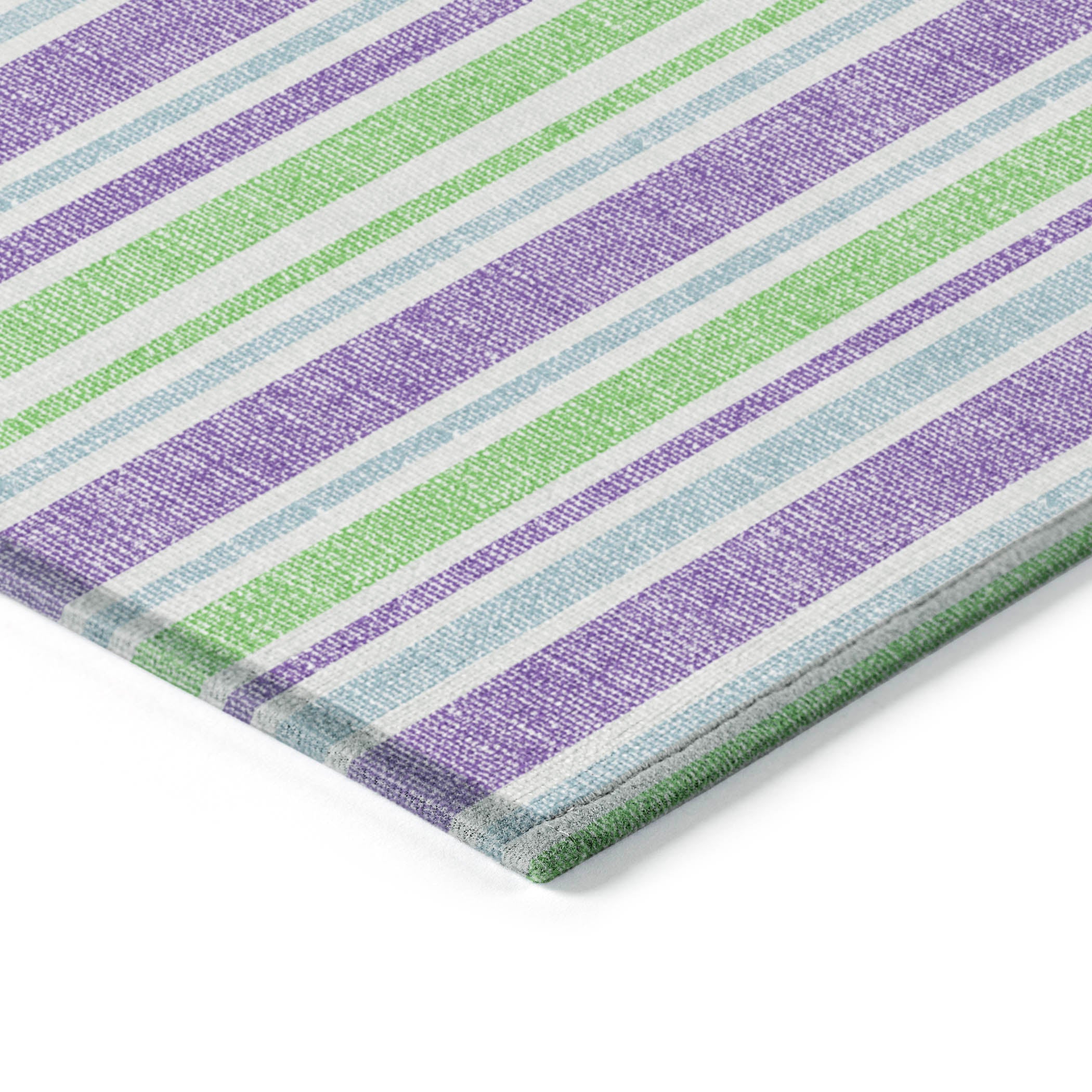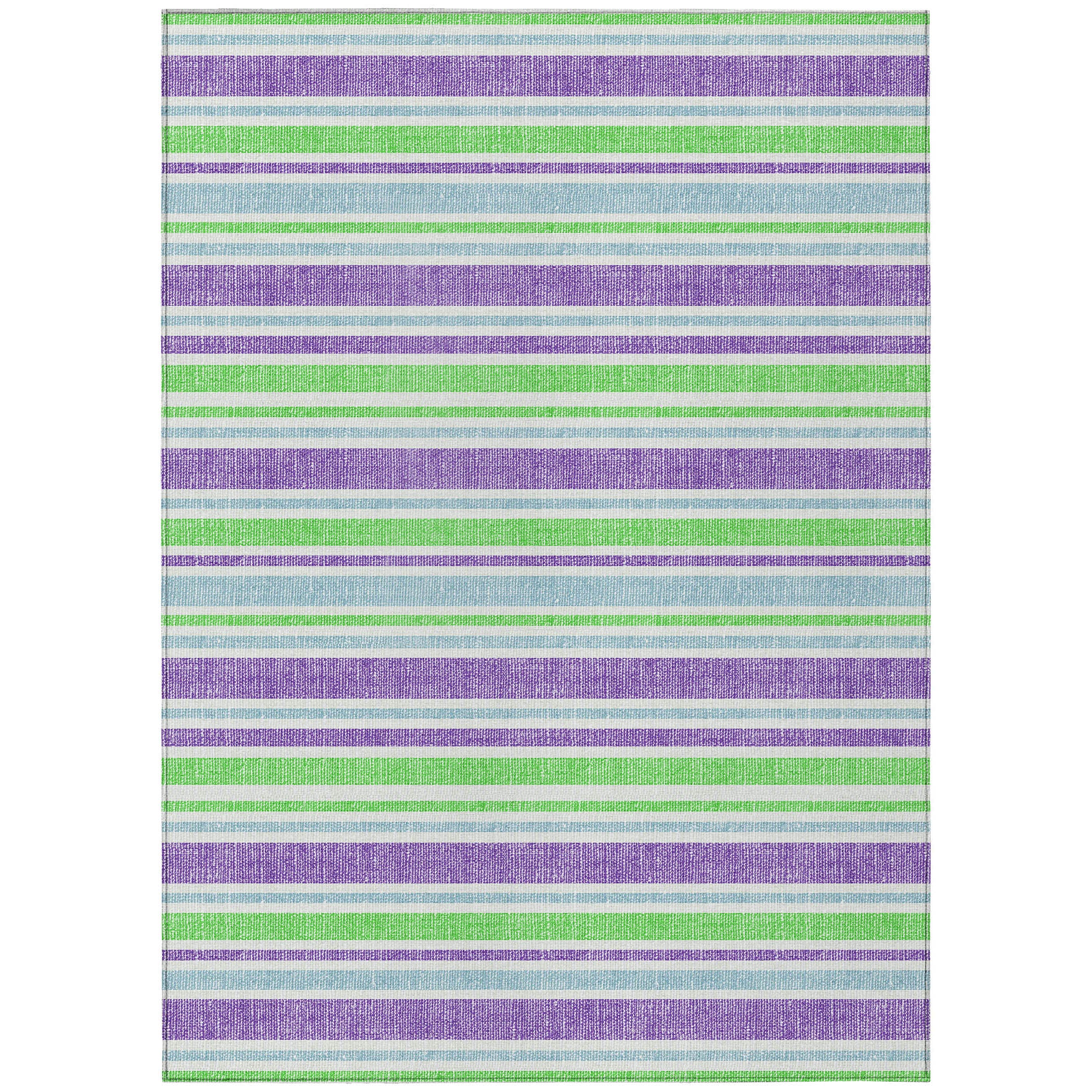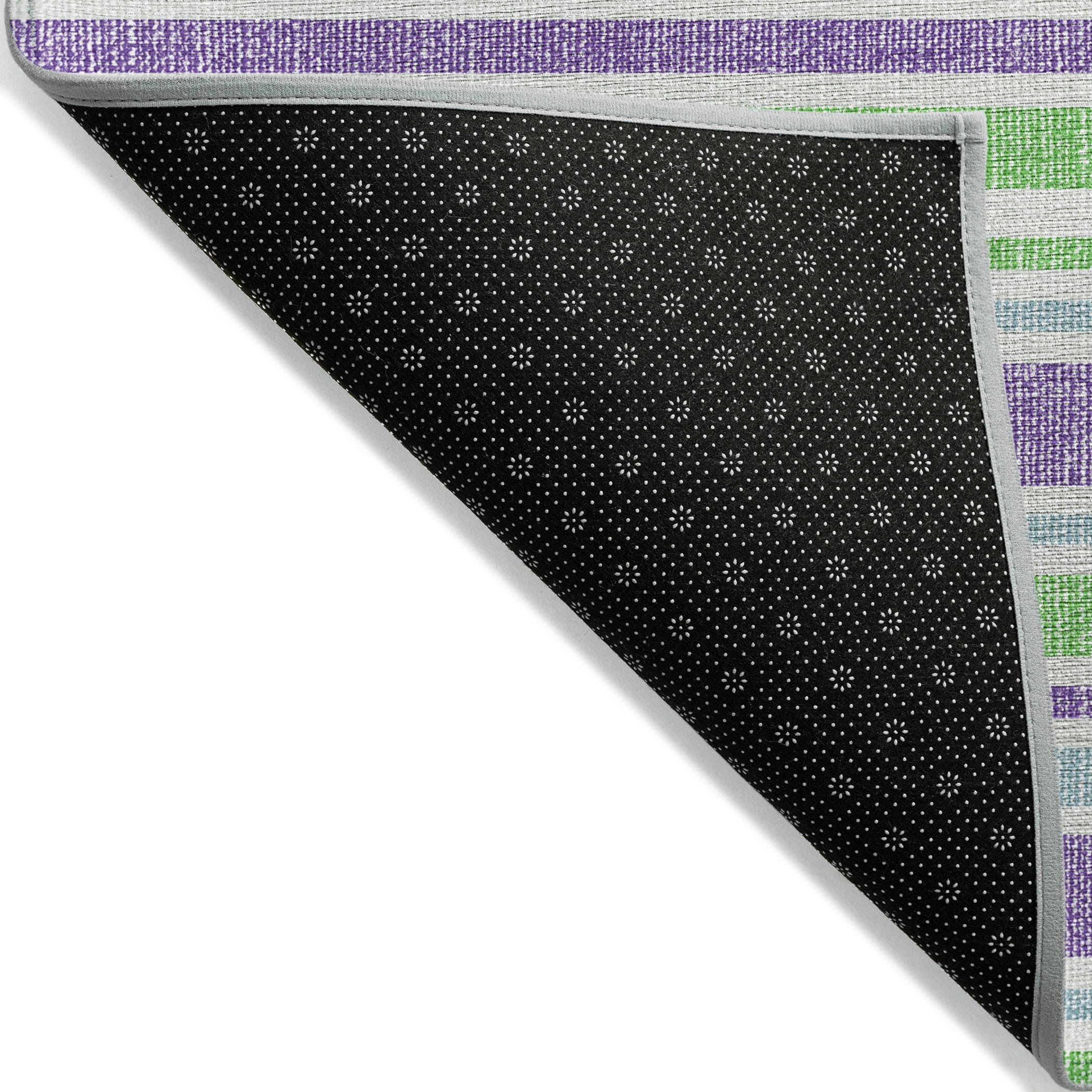 Make a bold statement in your space with our area rug featuring stripes that offer complementing colors to catch the eye and add energy to the room. This transitional striped rug effortlessly enhances any décor. It is UV stabilized for indoor or outdoor use, and its ultra-thin construction with an incorporated non-skid backing eliminates the need for a separate rug pad. Machine-washable and family and pet-friendly, this rug offers convenience and versatility.