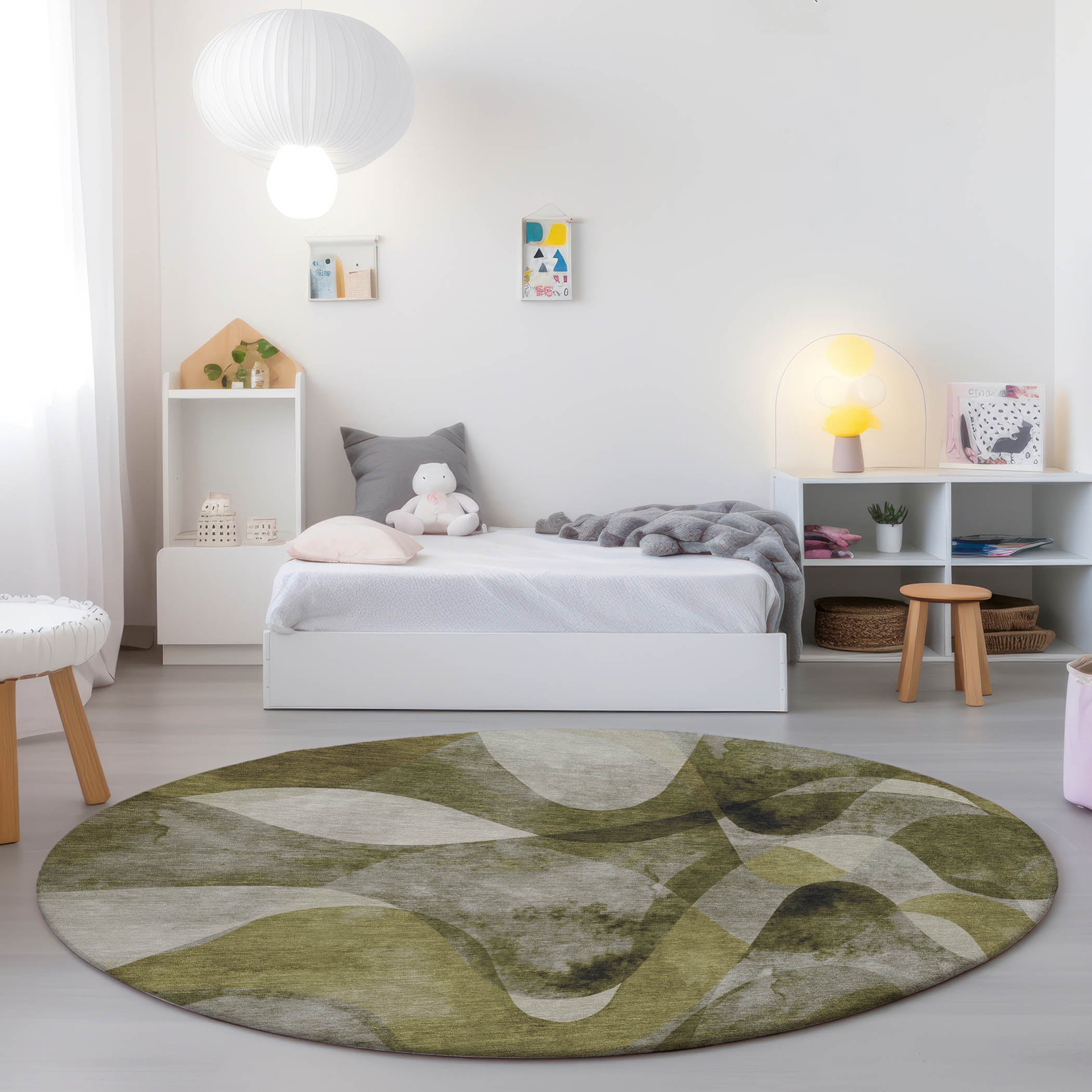 Revel in the intriguing charm of our abstract patterned area rug, designed to captivate with its open-ended and subjective nature. Its contemporary abstract design serves as a striking addition to any room. Ensuring resilience against sun exposure, it's UV stabilized for both indoor and outdoor use. The incorporated non-skid backing within its ultra-thin design negates the need for an additional rug pad. Machine-washable and friendly for both family members and pets, it offers effortless maintenance.