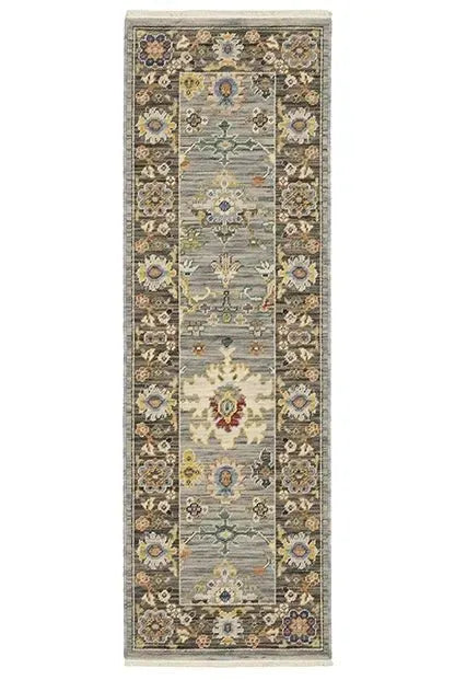 The Parisa PSA06 Denim/Multi Rug comes in various sizes, including 2x10, 5x7, 8x10, 8x11, 9x13, and 12x15 feet, accommodating different room dimensions.