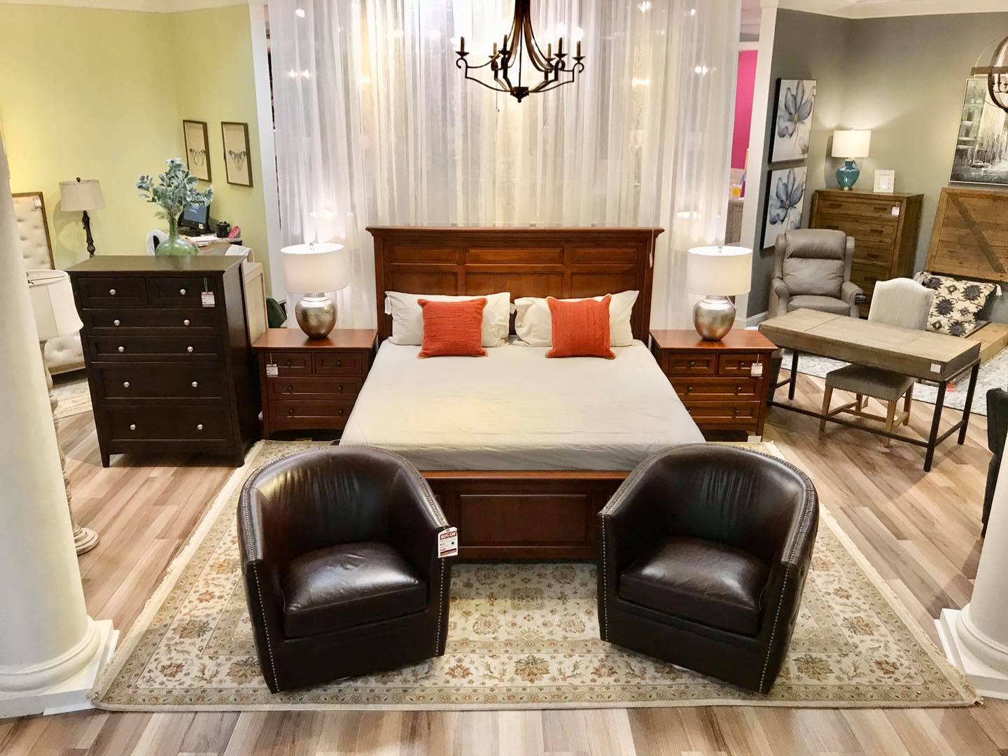 You can find everything from sofas, recliners, and accent chairs to coffee tables, cabinets, and media consoles at our furniture store in Pineville, North Carolina. We also have a huge collection of rugs, lamps, mirrors, chandeliers, wall art, pillows, and others.