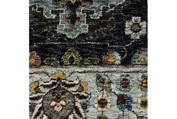 The Parisa PSA06 Denim/Multi Rug comes in various sizes, including 2x10, 5x7, 8x10, 8x11, 9x13, and 12x15 feet, accommodating different room dimensions.
