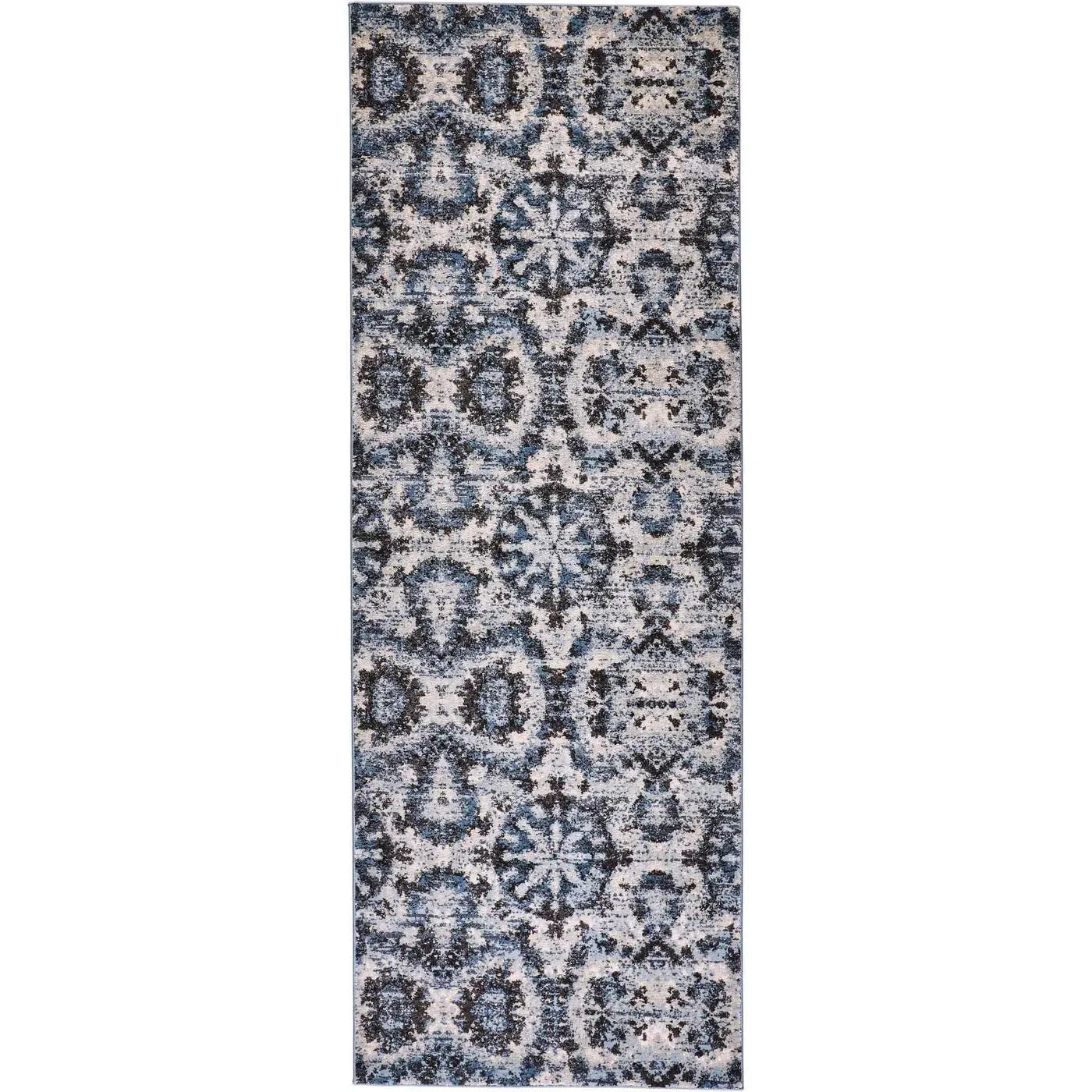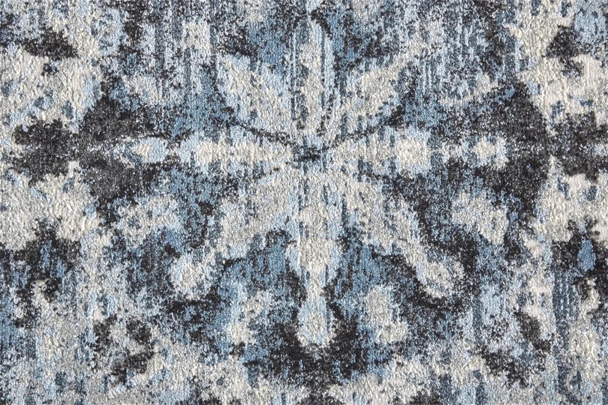 Refined inky blacks dance with serene icy blues in the Ainsley Collection as striking motifs are grounded by sublime ivory and sophisticated gray. The monochromatic color palette lends a timeless elegance to these bold designs as weathered effects create a sensible gracefulness that adds an opulent approachability.