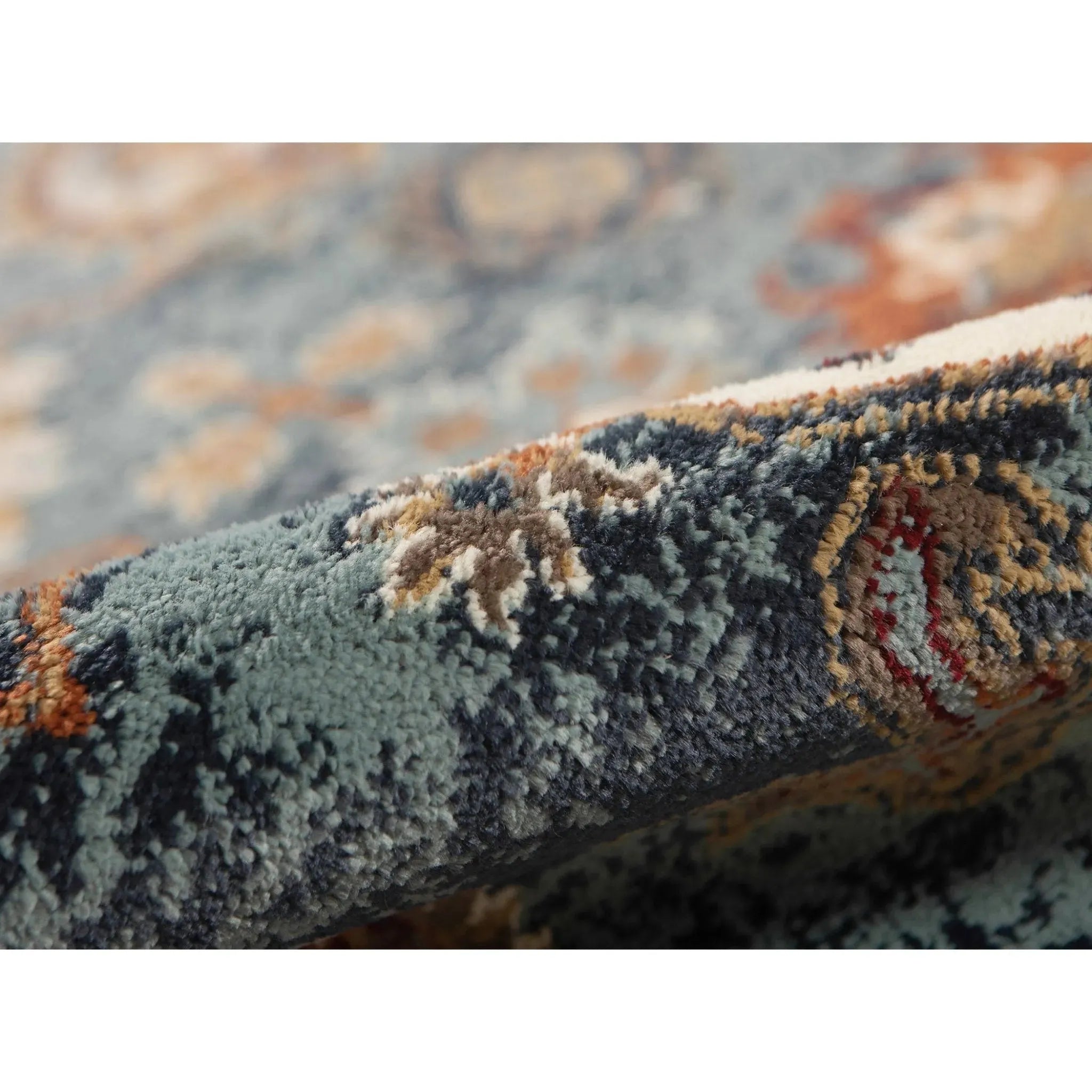 The Parisa PSA06 Denim/Multi Rug comes in various sizes, including 2x10, 5x7, 8x10, 8x11, 9x13, and 12x15 feet, accommodating different room dimensions.