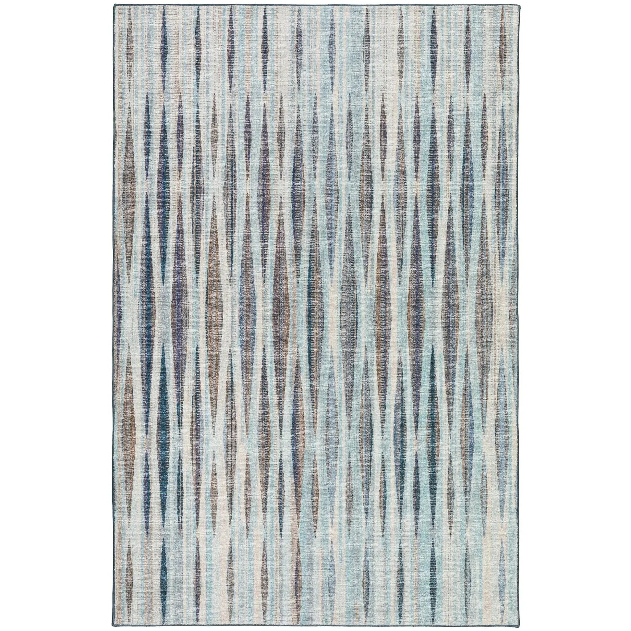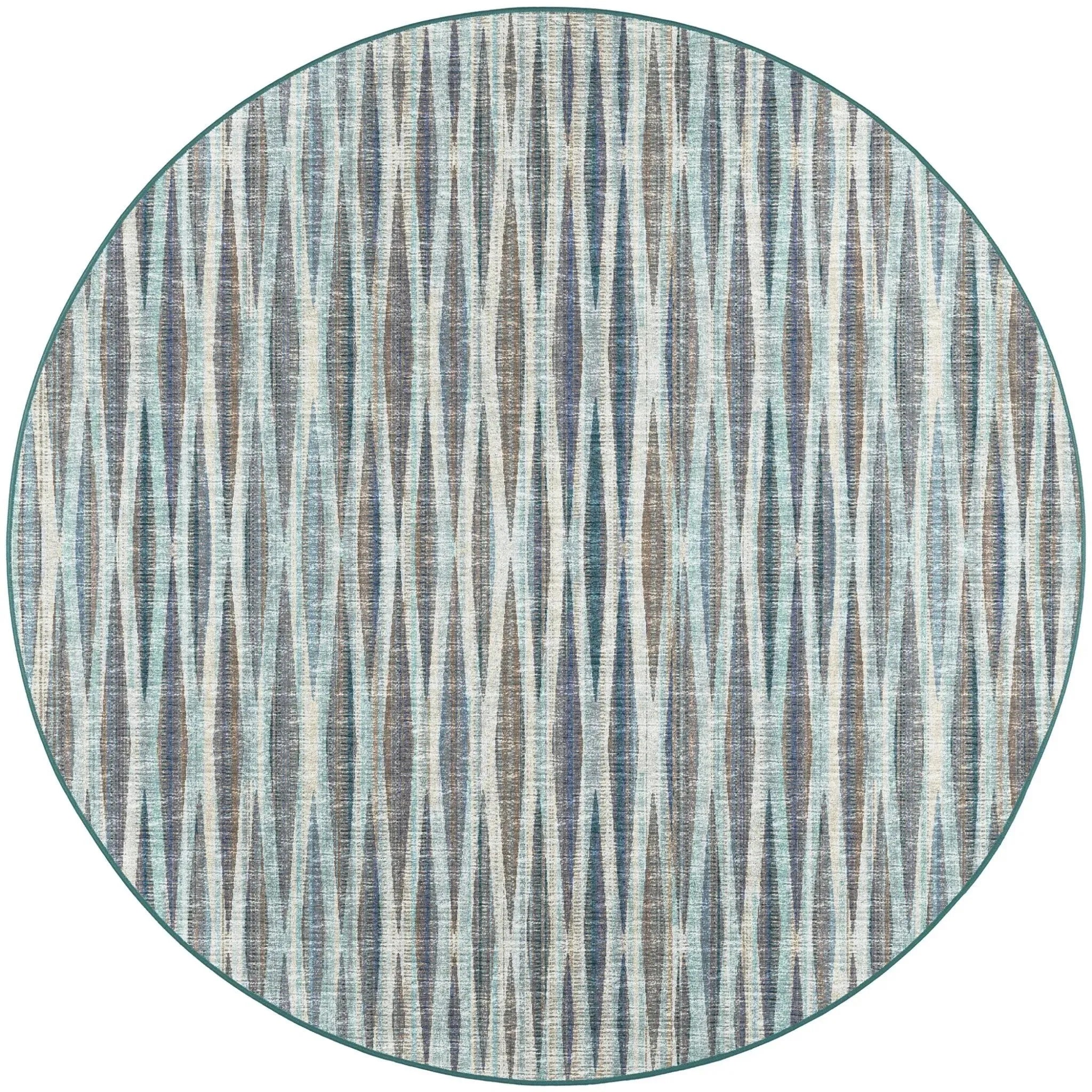 Amador has a hip, modern stripe with incredible color movement. Made of a heavy tight pile that is great for indoor or outdoor areas, it also has a non-skid backing. It is crafted in the USA.