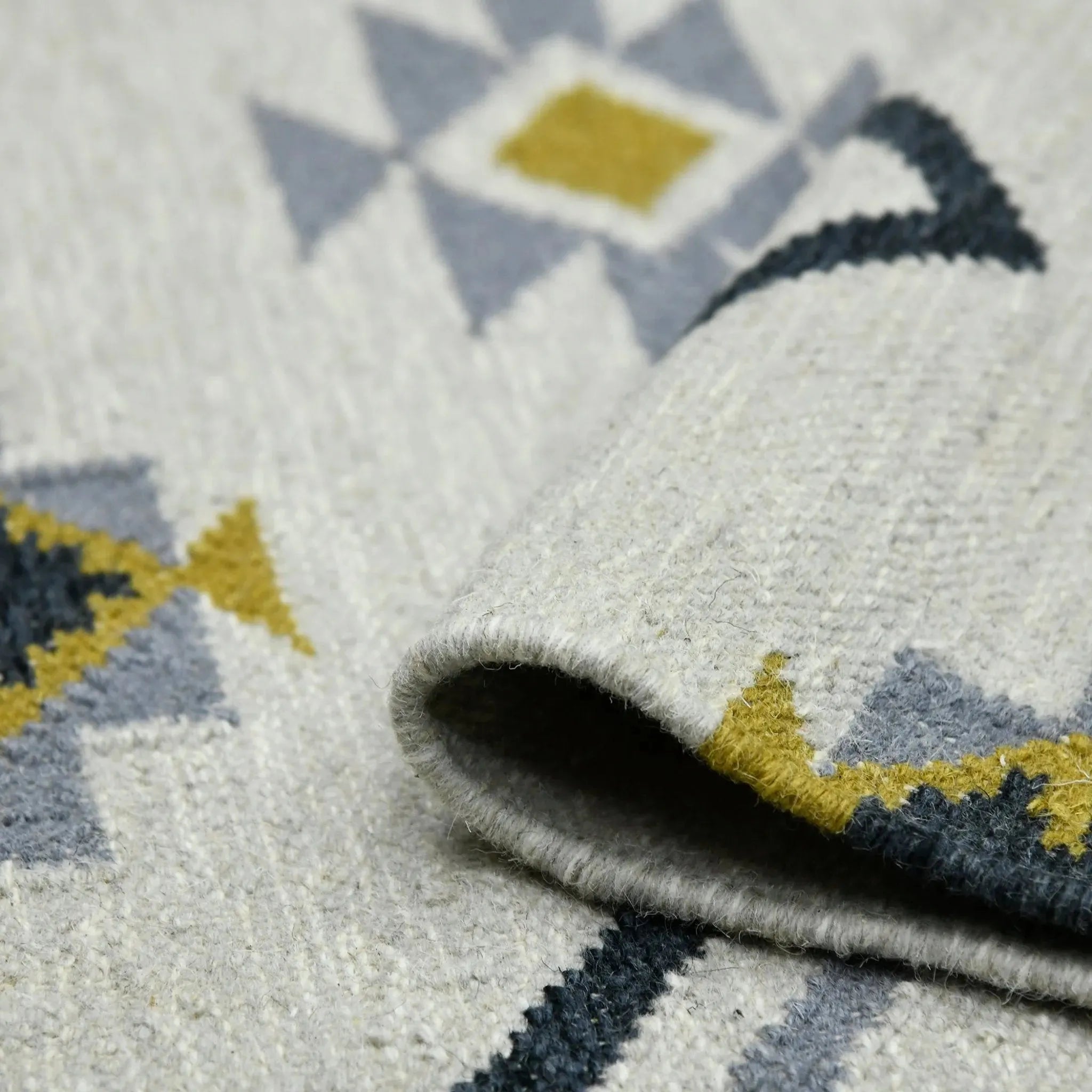 Bring the timeless tribal beauty into your home with this alluring flatweave area rug. Showcasing a combination of eclectic and southwestern designs in neutral colors, this will fit into a variety of home decor styles. Beautifully hand-woven by skilled artisans in India using 100% all-natural wool, this rug will endure the test of time.