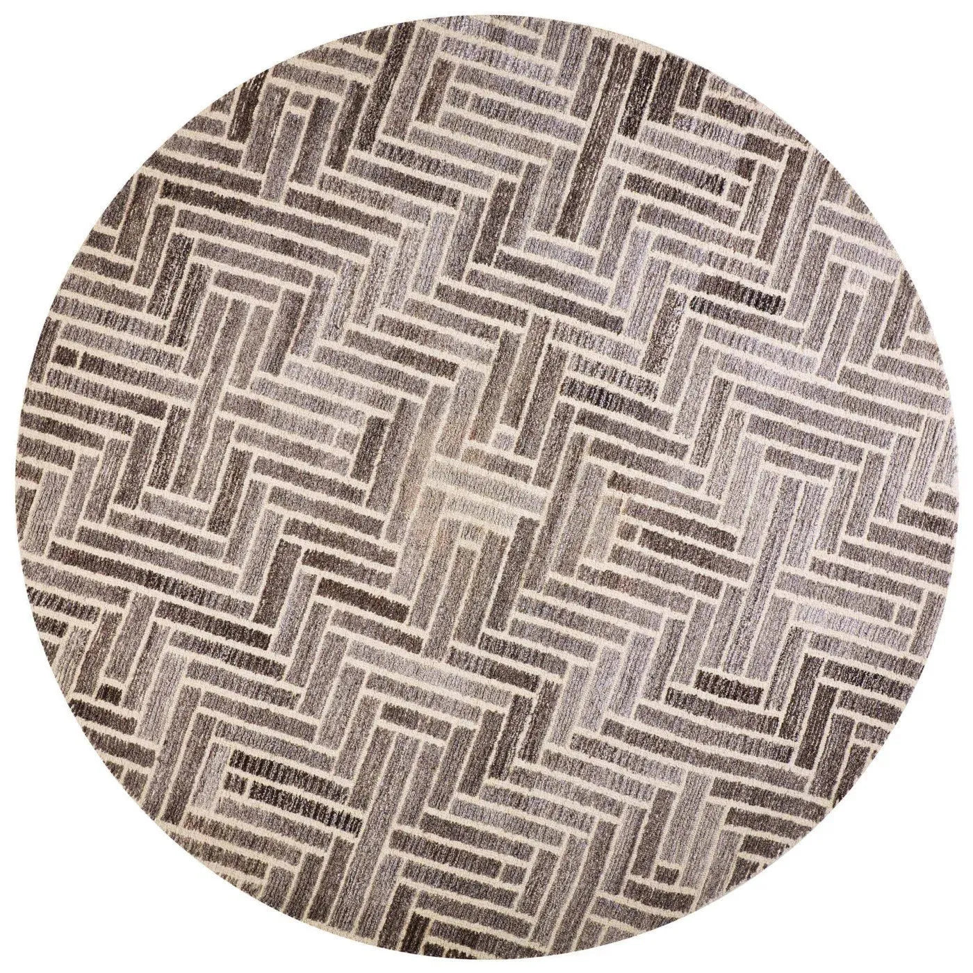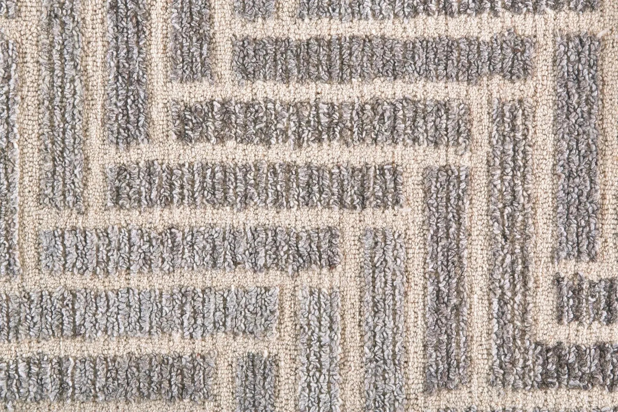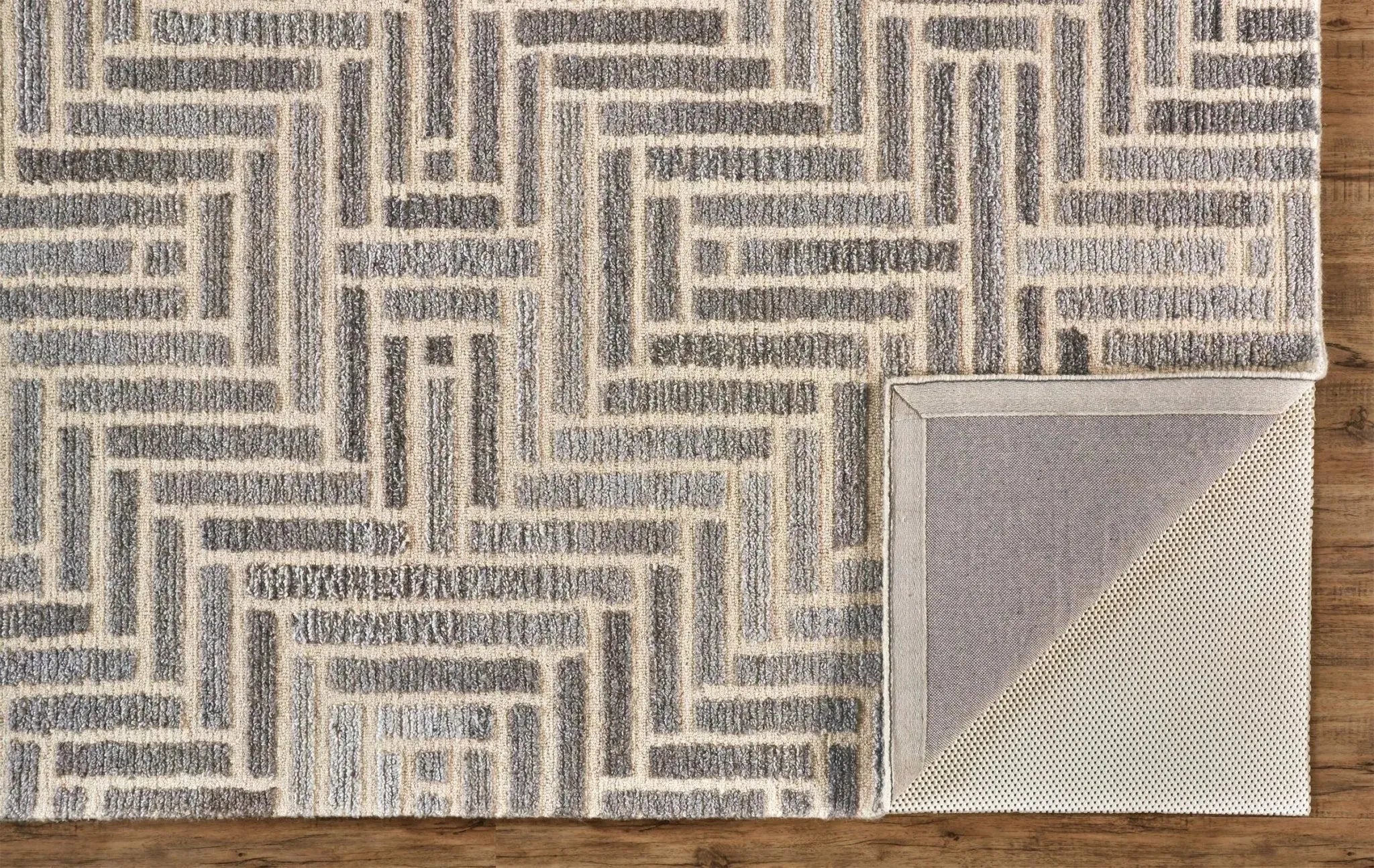 A wool and viscose pile is meticulously hand-tufted in sophisticated grays and warm taupes accented by inky blacks and a subtle sheen in the Asher Collection. The transitional geometric motifs are grounded by the neutral color palette making this collection approachable and easy to decorate with.