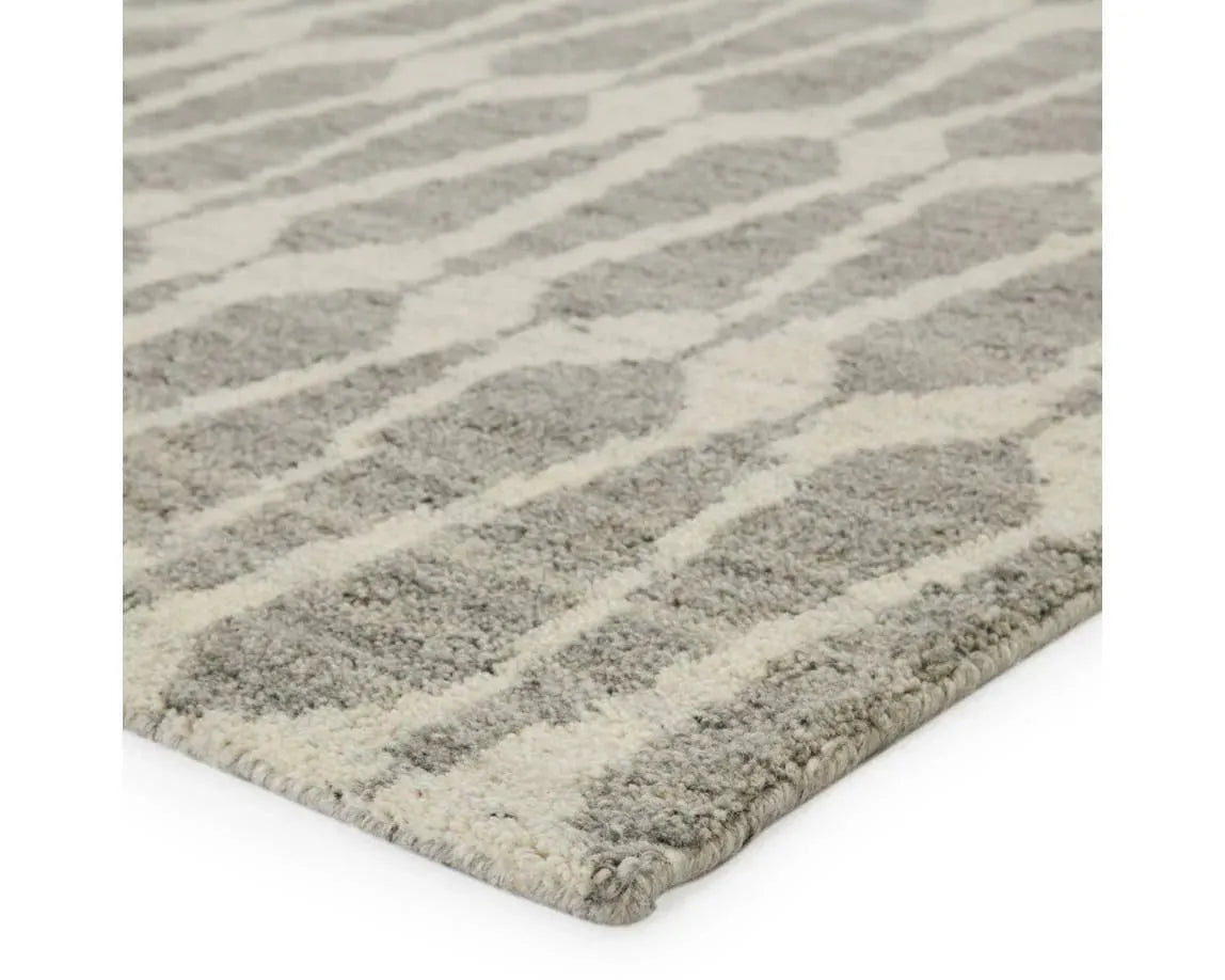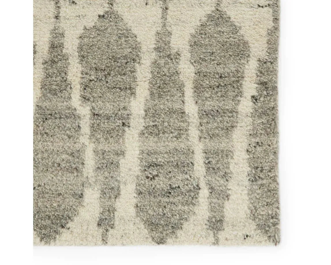 The Azland collection highlights the stunning artisan-made quality of a Persian knot accent. The Sabot hand-knotted area rug is a boldly patterned addition to any transitional style living space with incredibly plush wool. The timeless appeal of a repeat Moroccan pattern pairs with light, neutral hues of gray and ivory for a global and simultaneously luxurious look.
