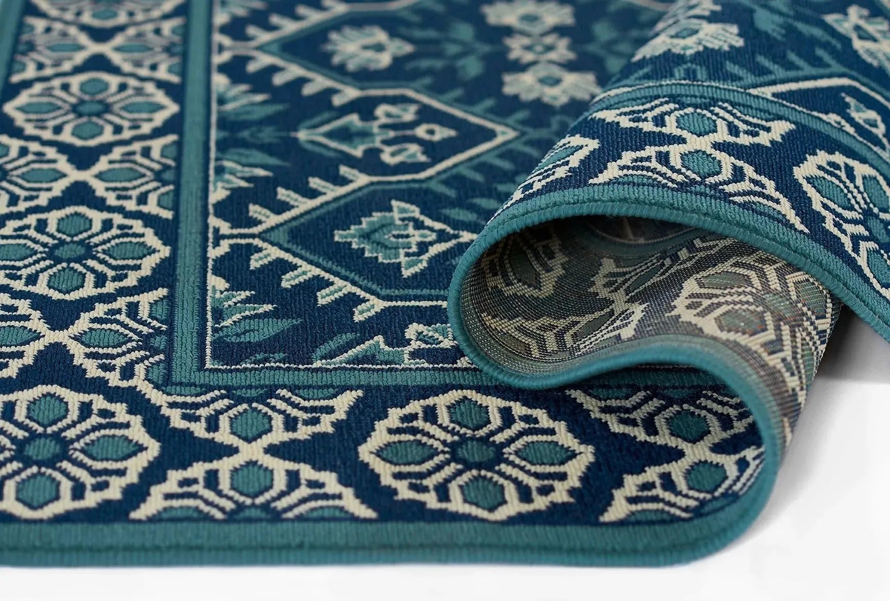 Durable power-loomed construction ensures each decorative floor covering transitions beautifully from season to season while the vibrant color palette and enduring polypropylene fibers offer endless design possibilities indoors and out.