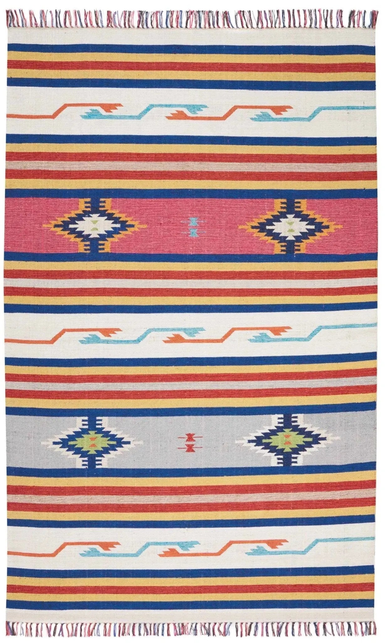The Baja collection by Nourison is a series of casual, reversible flatweaves with designs inspired by traditional Moroccan, Ikat, and Kilim rugs and a warm and stylish color palette that will brighten any space and works well with any decor. Hand made with natural cotton fibers and finished with fringe detail. This rug is perfect for your living room, dining room, den, bedroom, or any living space.