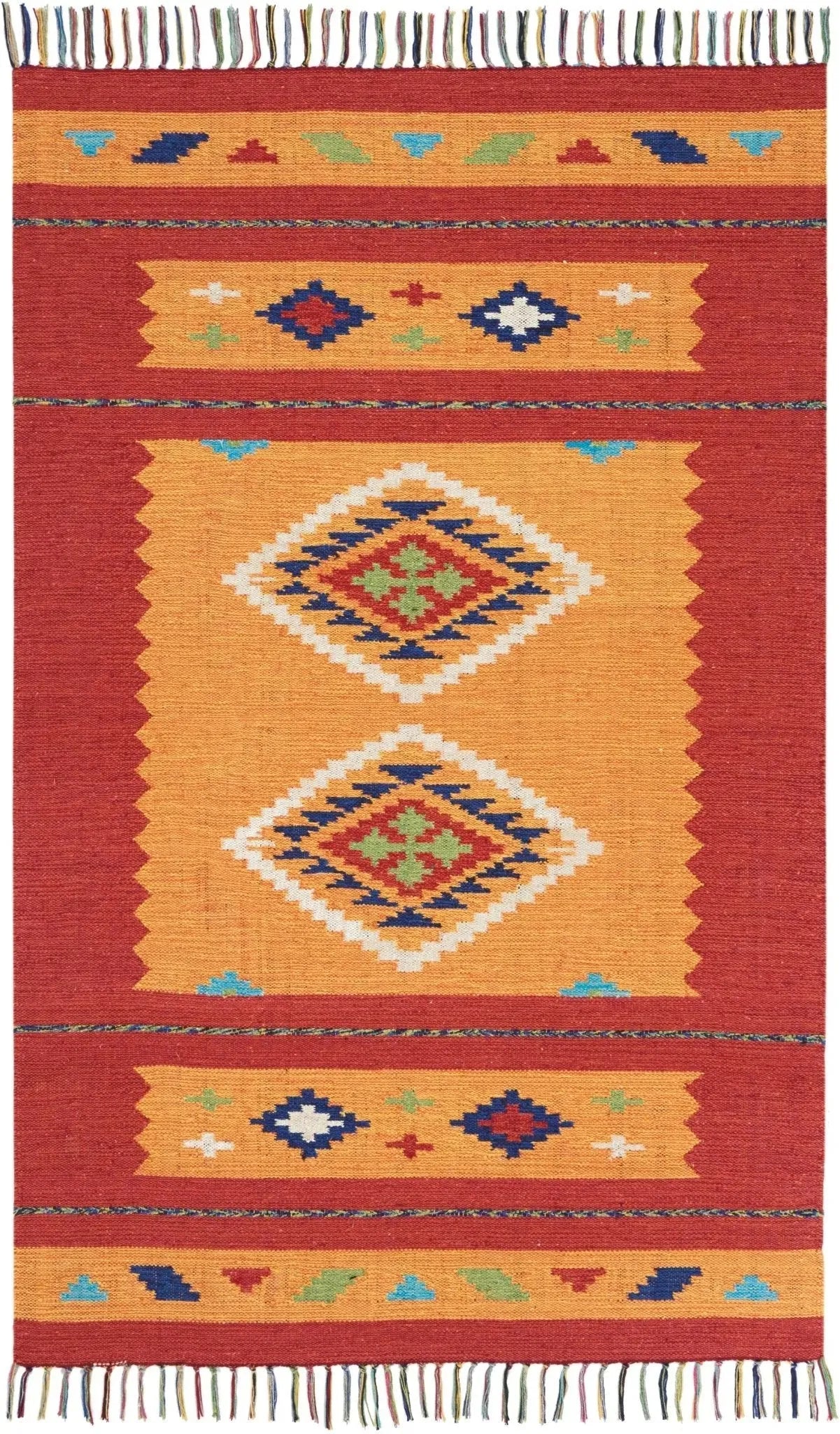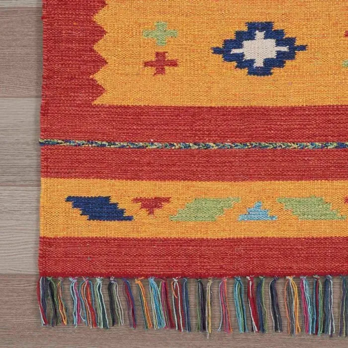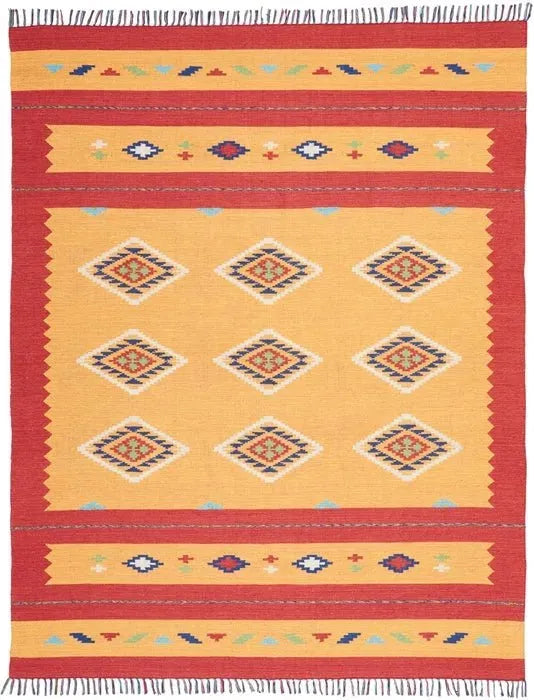 Tribal influences, warm sunny colors, and the casual comfort of a flat weave area rug define the appeal of our Baja Collection. These collectible contemporary area rugs are ideal for the modern room as well as traditional and eclectic rooms. The tribal designs reference Moroccan, Ikat, and Kilim trends in home decor. Beautifully produced with natural cotton fibers, these stylish area rugs with their exciting color combinations and fringe finish offer the look of handmade, artisanal weavings at such an affordable price, you can indulge in multiples. And, they are reversible! Bring a cool, casual vibe into your home with the vibrant Baja Collection.