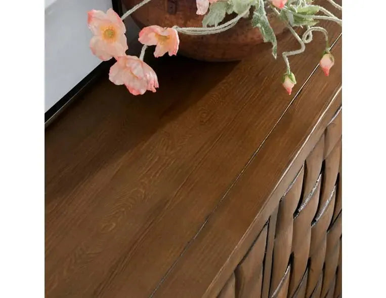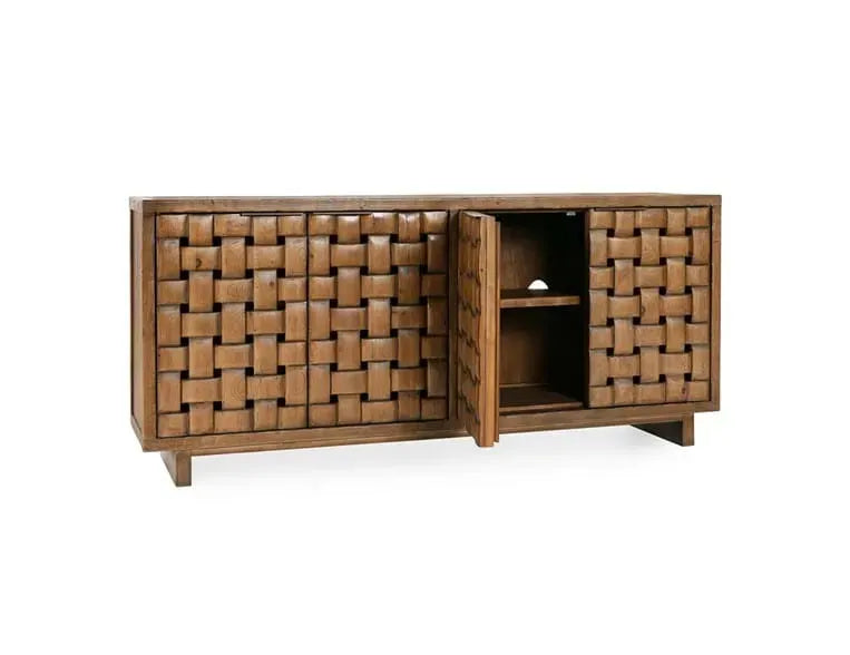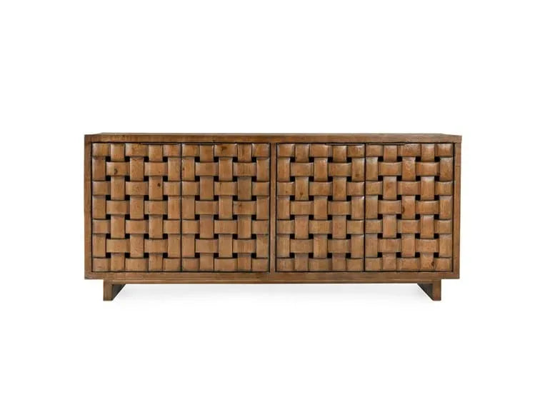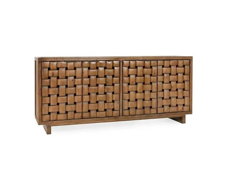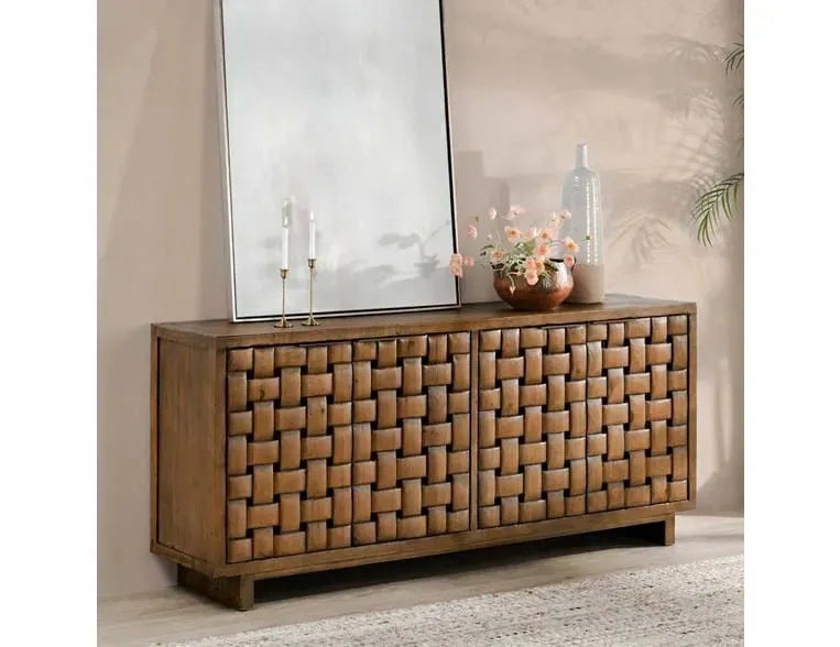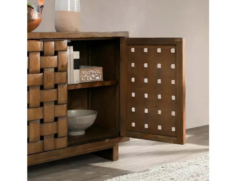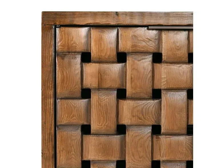The Bast Pine Wood Cabinet combines natural charm with artistic craftsmanship. Made from solid pine wood, its intricately woven design on the doors adds texture and visual interest. Featuring ample interior storage, it’s perfect for organizing dining essentials, living room accessories, or office supplies. The warm finish highlights the wood’s natural grain, making this cabinet a functional and stylish centerpiece for any space.