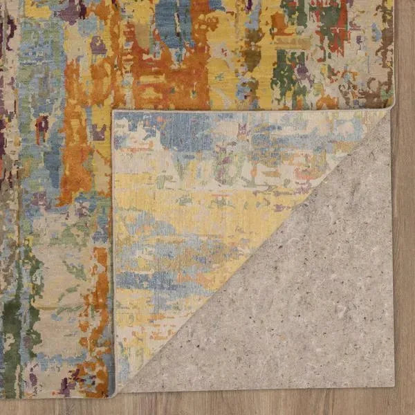 Overdyed contemporary hues of grey, beige, blue, purple, olive, rust, red and ivory are distressed and eroded in the eclectic modern art inspired style of Karastan’s Soigne Area Rug of the Bespoke Collection. Artisan hand-knotted with a blend of luxurious wool and silk yarn, this design is also available in runners, scatters, 5’ x 8’ area rugs, large 8’ x 10’ area rugs and other popular sizes. While wool is renowned for its strength and durability, silk is coveted for its luminescent sheen and softness, bringing the best of both worlds home. Keep your new rug and the flooring beneath looking their best with an essential all-surface, earth conscious rug pad, crafted of 100% recycled fibers and certified Green Label Plus by The Carpet & Rug Institute! This collection is made to order and will be serviced within the vendor lead time of 6-9 months.
