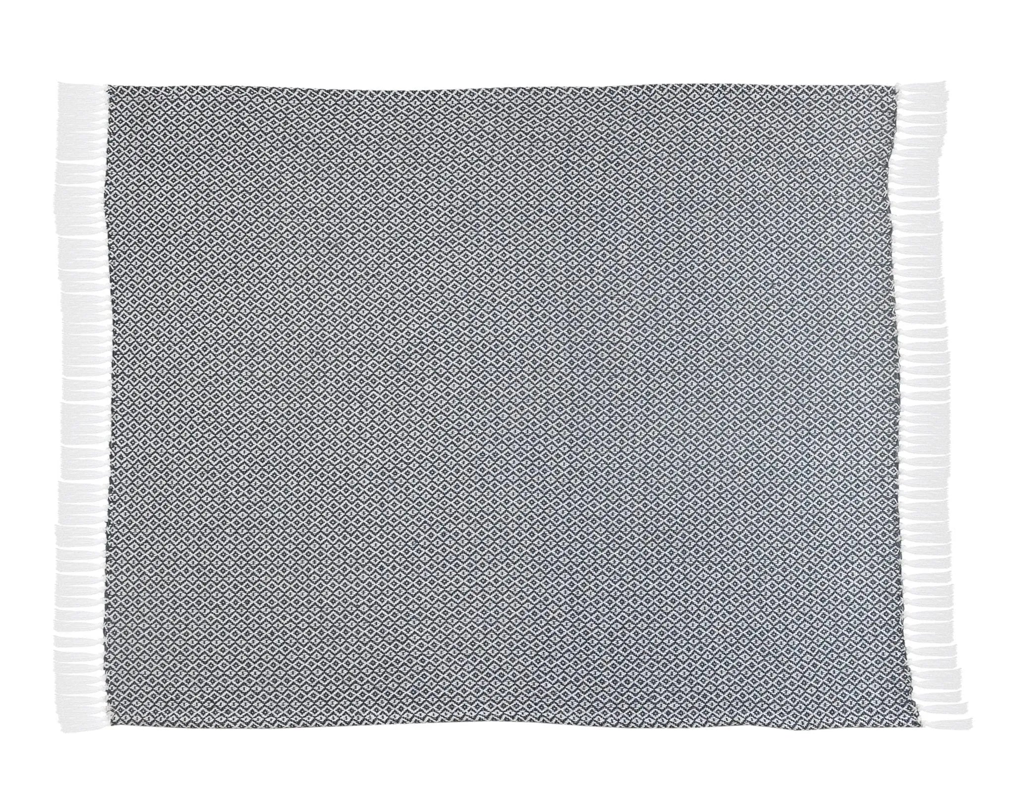 Come get cozy with your new favorite throw blanket! With your new addition, it is quite tempting to stay at home all day. Even if you can't, you can still enjoy the view of your new throw blanket placed over a chair, folded onto the couch, or spread onto the bed. If a comfy and homey look is what you are going for then this is the throw for you! The well-toned blue and ivory coloring go well with a variety of different home decor themes. The fringe and geometric diamond features also give this blanket an eye-catching appearance. No matter the season, there is always time to relax and snuggle up with this new addition to your home.