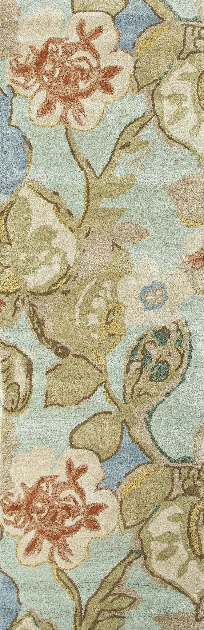 The Parisa PSA06 Denim/Multi Rug comes in various sizes, including 2x10, 5x7, 8x10, 8x11, 9x13, and 12x15 feet, accommodating different room dimensions.