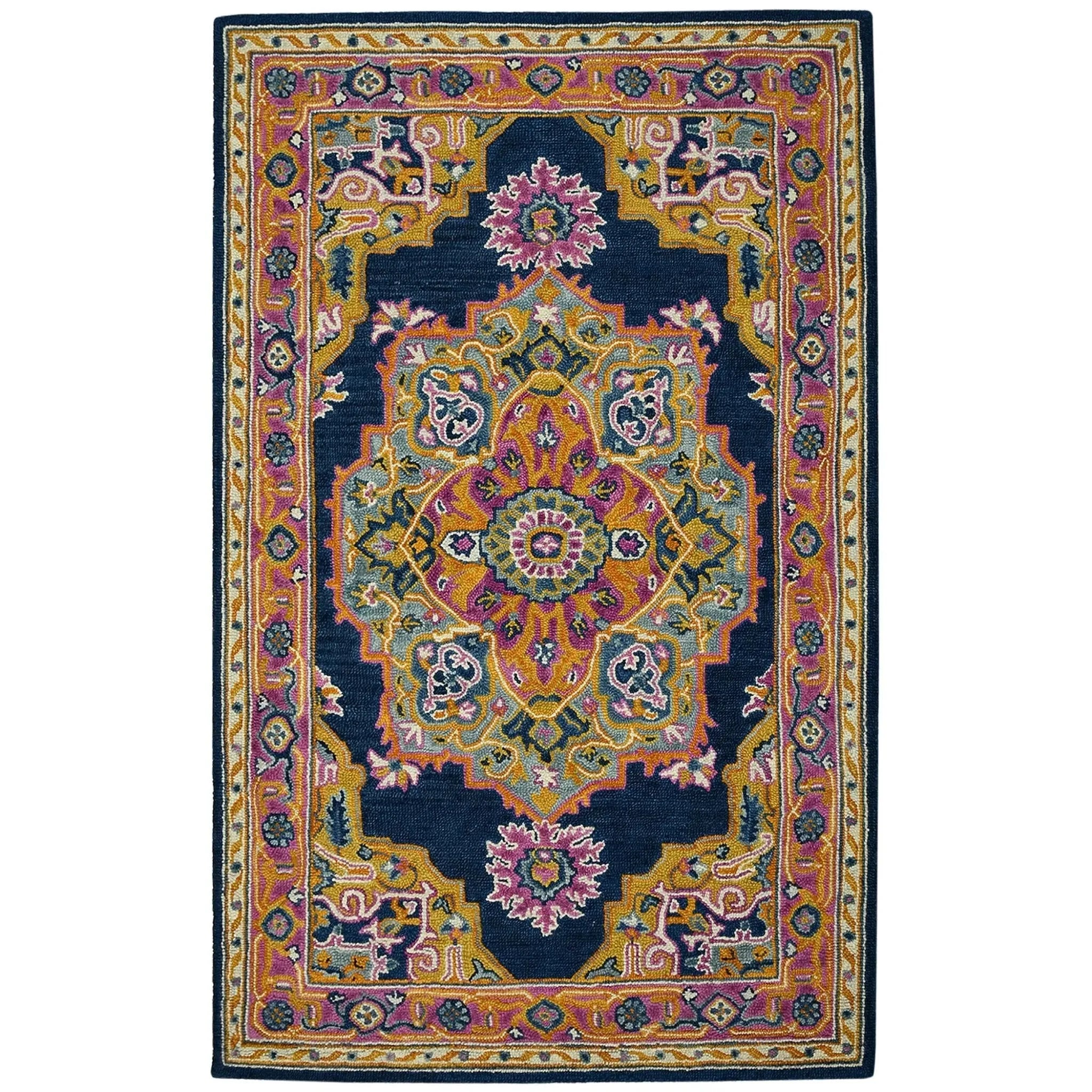 You will adore this bright, bohemian area rug featuring bold colors in a thick, plush design. Hand-tufted with pride in India of 100% New Zealand wool, it is as sturdy as it is soft. Featuring a cotton backing to prevent some sliding and shifting, this rug is the perfect addition to your bohemian or transitional home.