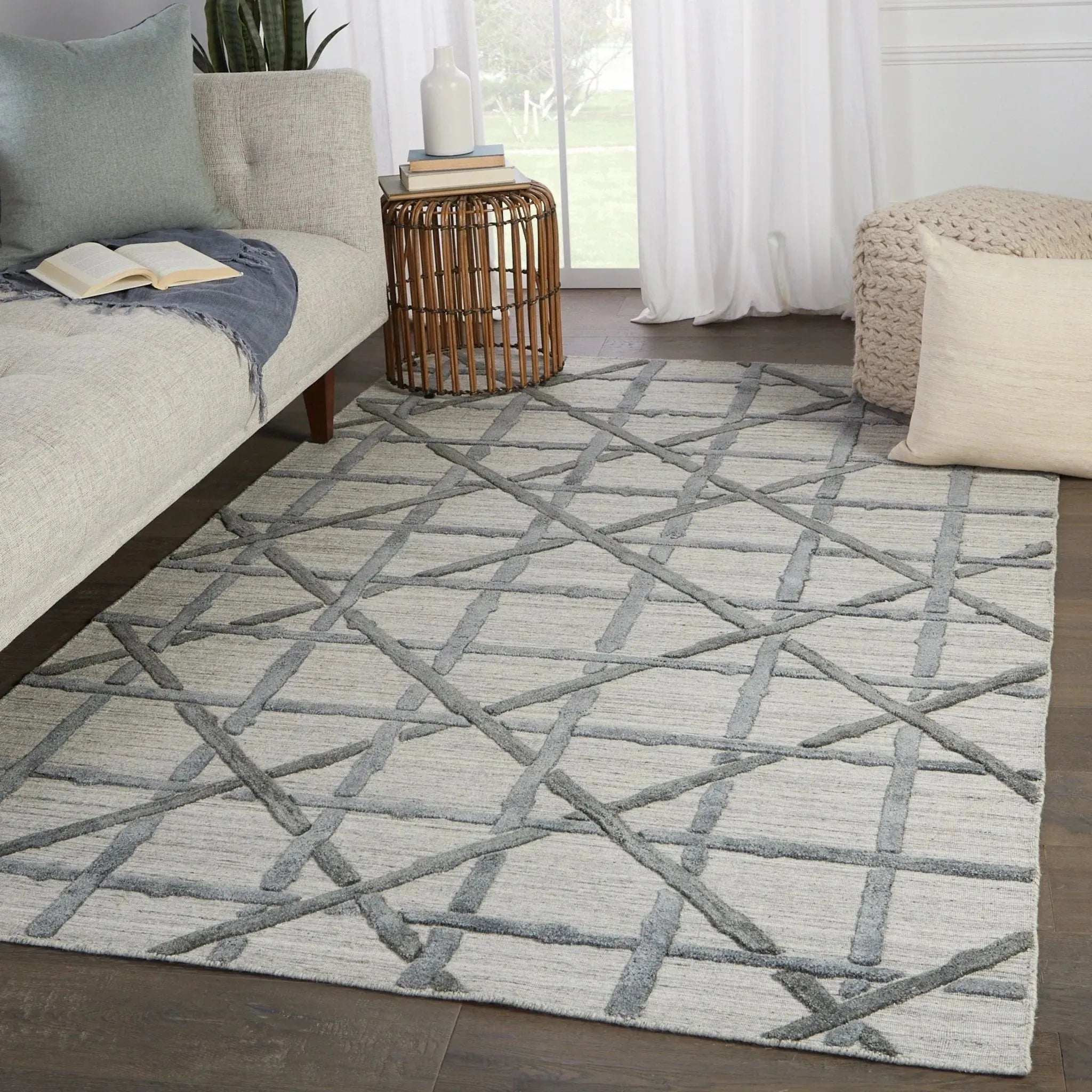 The Brentwood collection by Barclay Butera is a formal expression of style and allure found in the exclusive Los Angeles enclave. A classic, bamboo-inspired lattice motif and tonal gray colorway defines the chic style of the Mandeville design. Hand-loomed of luxurious wool and viscose, this striking rug also features over-tufted details for added dimension and a textural touch.