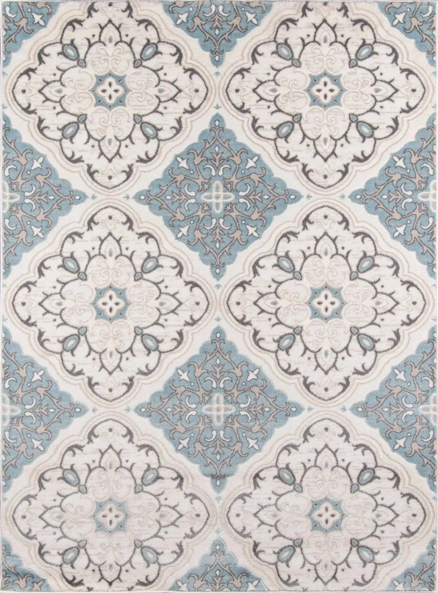 Brooklyn Heights by Momeni features timeless damasks, trellis motifs and oriental designs in cool tones of ivory, blue and grey, machine woven in Turkey on a Wilton loom using soft and durable heat-set polypropylene and polyester yarns. This rug is perfect for your living room, dining room, den, bedroom, or any living space.