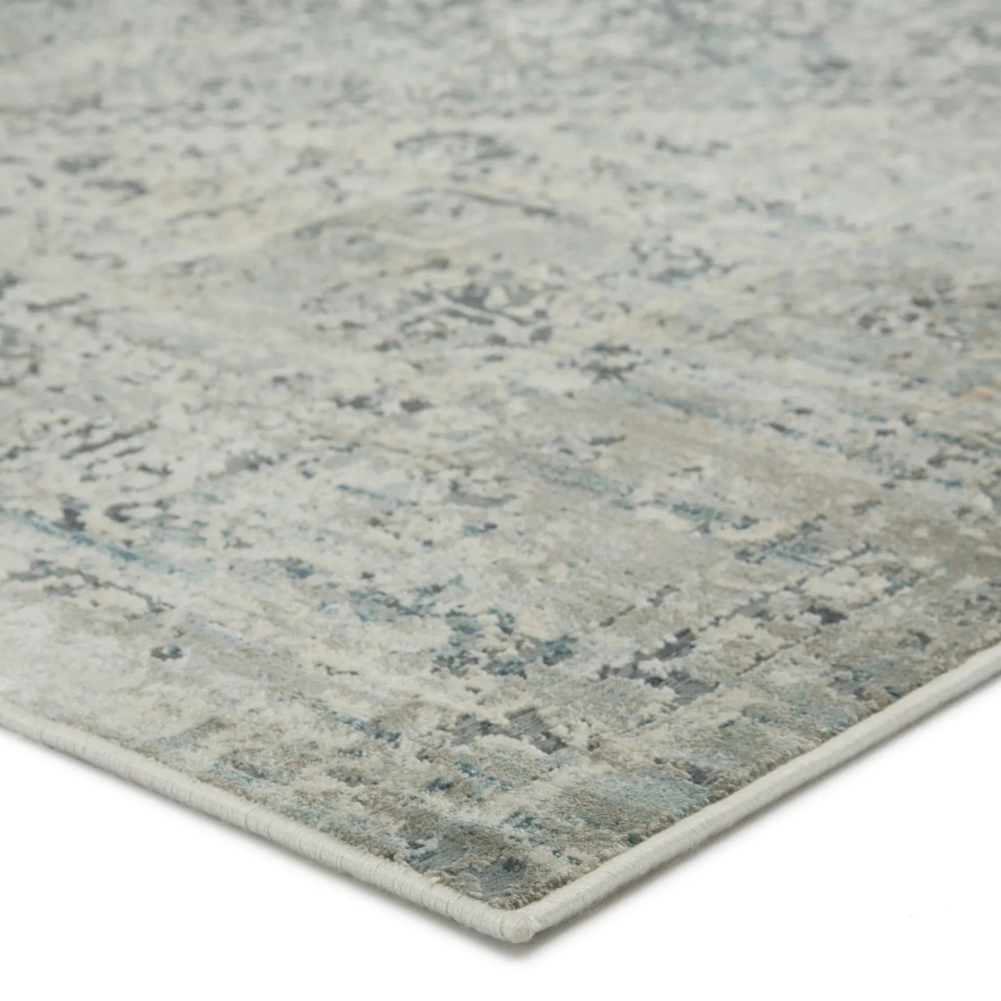 Luxurious with an eye-catching sheen, the Caicos collection features an assortment of arresting patterns and a blend of moody and serene hues. The Kiev rug showcases elegant Old World influences with a subtle distressed effect over the vintage medallion design. Tones of blue, gray, ivory, and cream accent this lustrous viscose and shrink polyester rug.