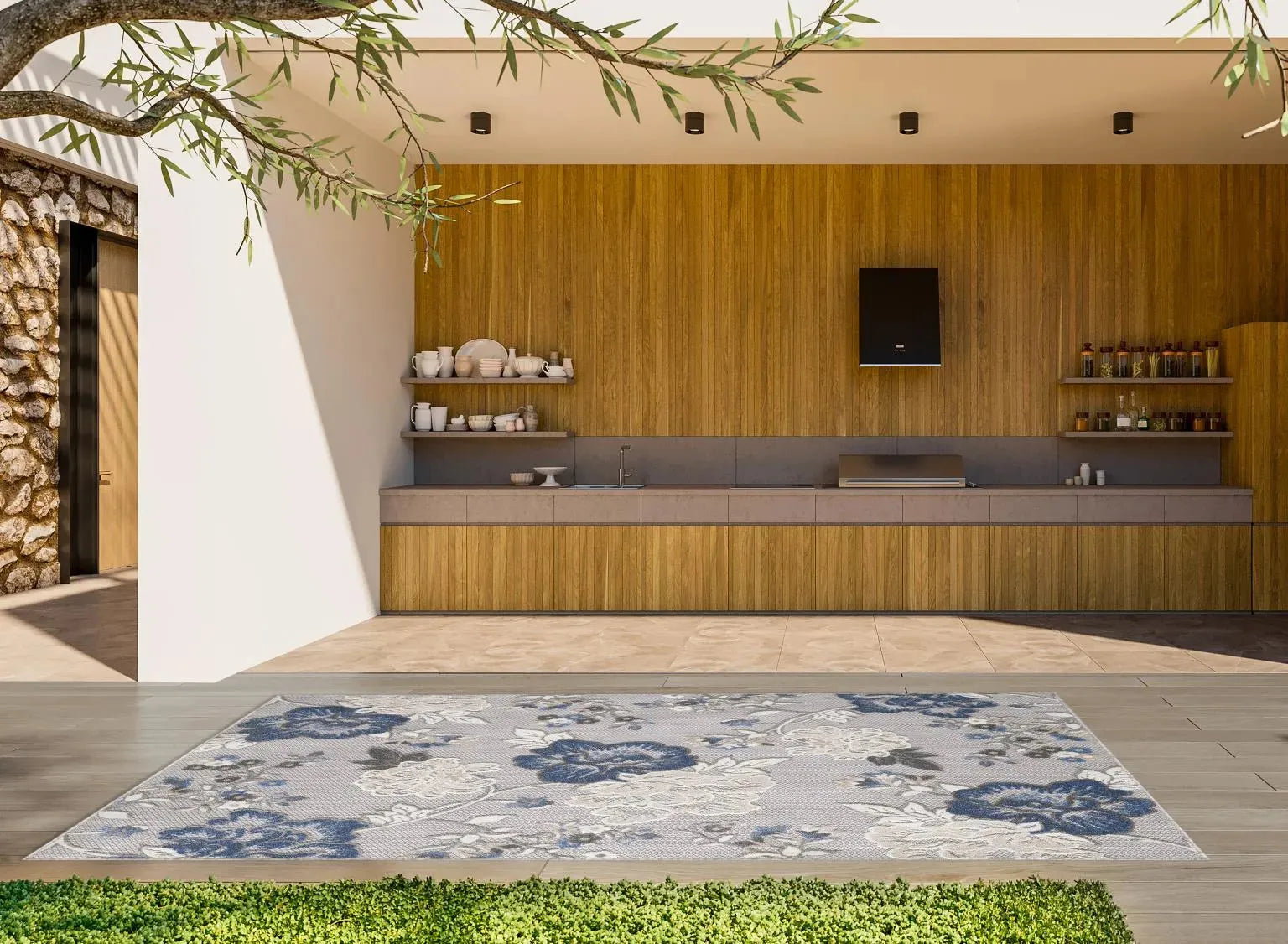 Refresh your outdoor living space with one of our Calla rugs! This collection is made of beautifully bold rugs in a variety of patterns and colors. These easy care and all-weather purpose rugs are machine woven in India of 100% UV treated polypropylene. Calla has a low ¼” pile height with texture.