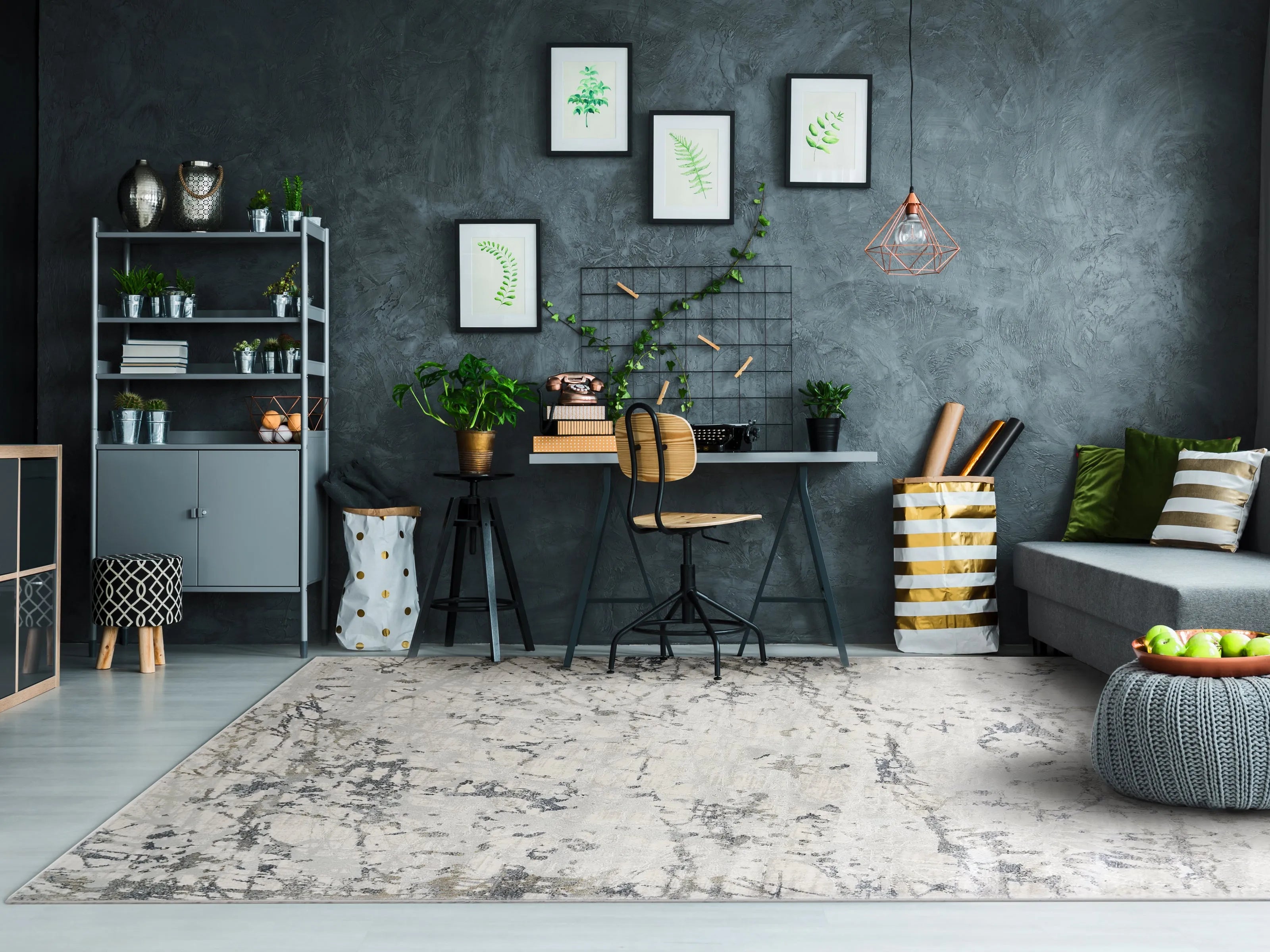 Castilla is a blend of shrink polyester and polypropylene, machine-made in Turkey. It's tightly packed fibers with a captivating shimmering sheen create for both density in touch and shine in appearance. The soft beiges, greys, and blues make these rugs the perfect complement to neutral settings. The sheen across the surface gives the designs and colors different appearances depending on the angle upon which the rug is looked at.