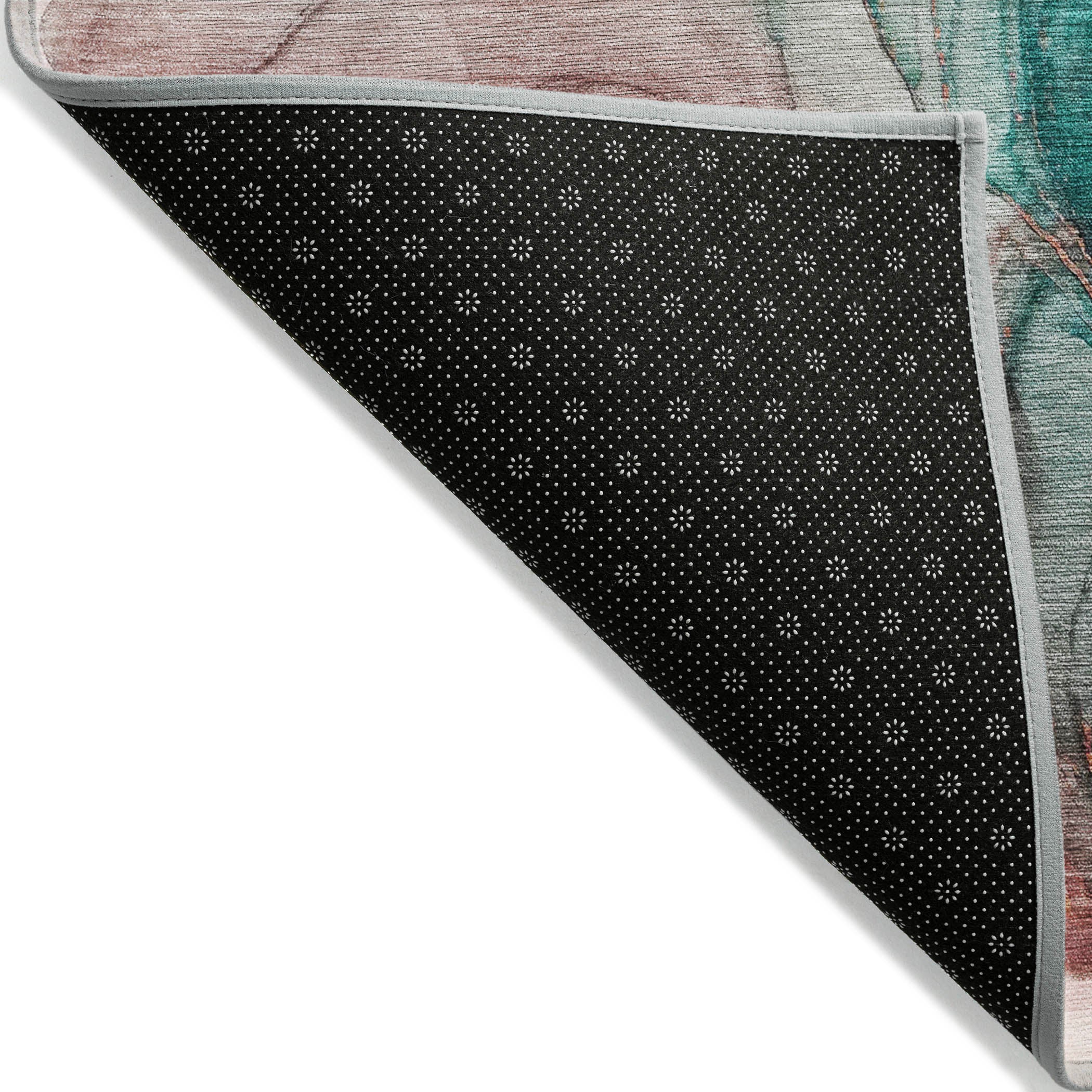 Experience the serene beauty of our transitional area rug, featuring soft organic shapes that create a modern flared pattern. Ideal for indoor or outdoor use, this UV stabilized rug is designed with an ultra-thin construction and a built-in non-skid backing, eliminating the need for a separate rug pad. It's machine-washable and family and pet-friendly, providing convenience alongside style.