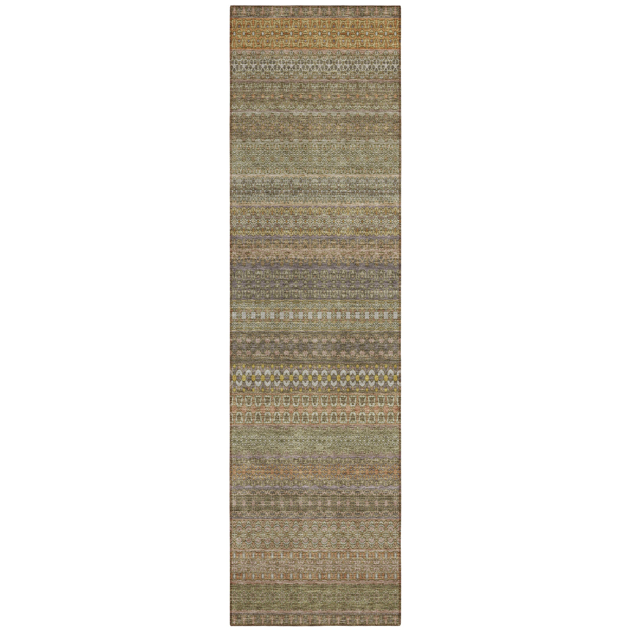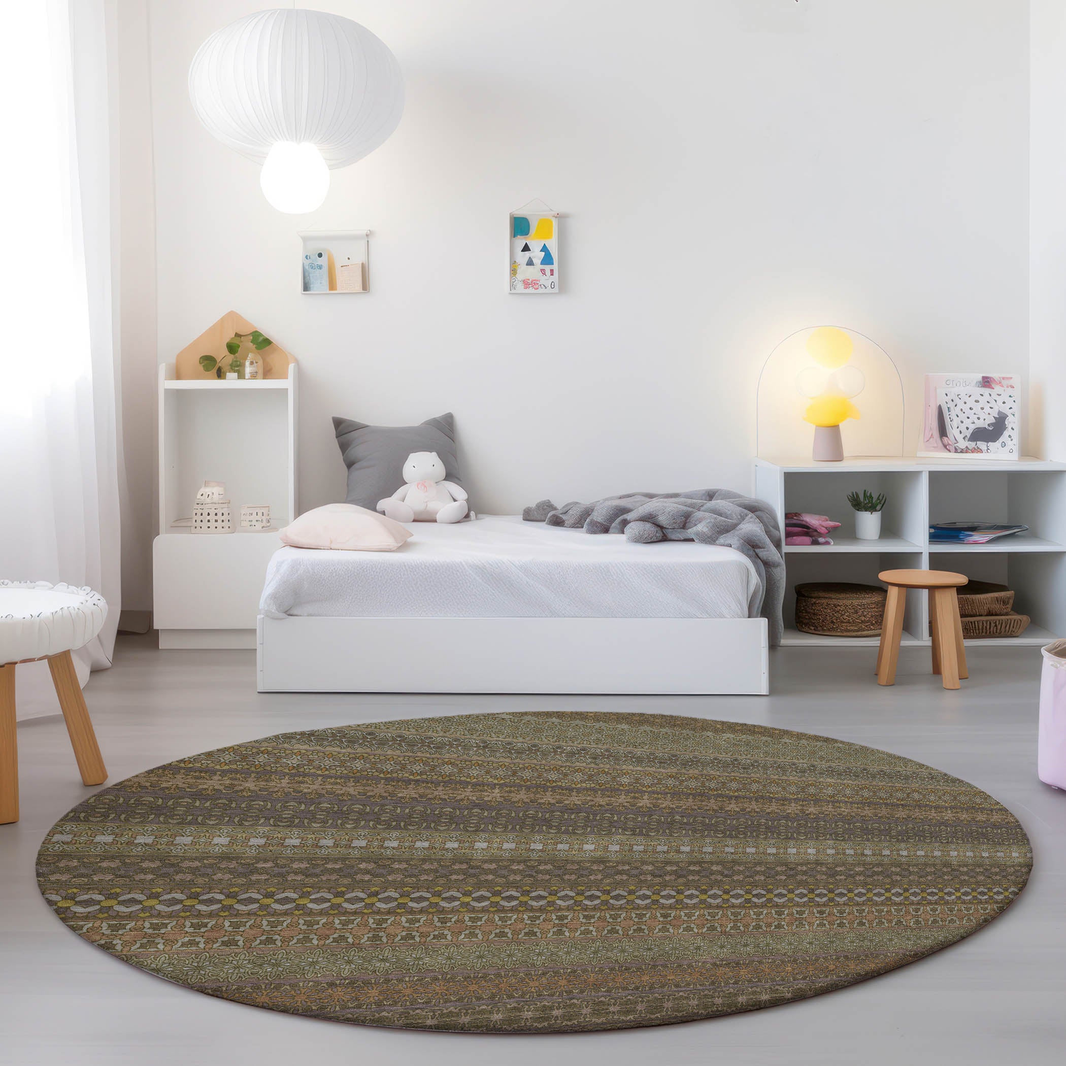 Step into a world of whimsy with our area rug, featuring an eclectic mix of shapes and motifs that add a touch of playfulness to your floor. This transitional striped rug is a true statement piece. With UV stabilization, it can be confidently placed indoors or outdoors. The ultra-thin construction includes an incorporated non-skid backing, ensuring stability and removing the need for a separate rug pad. It's machine-washable and designed to withstand the demands of a family-friendly home.