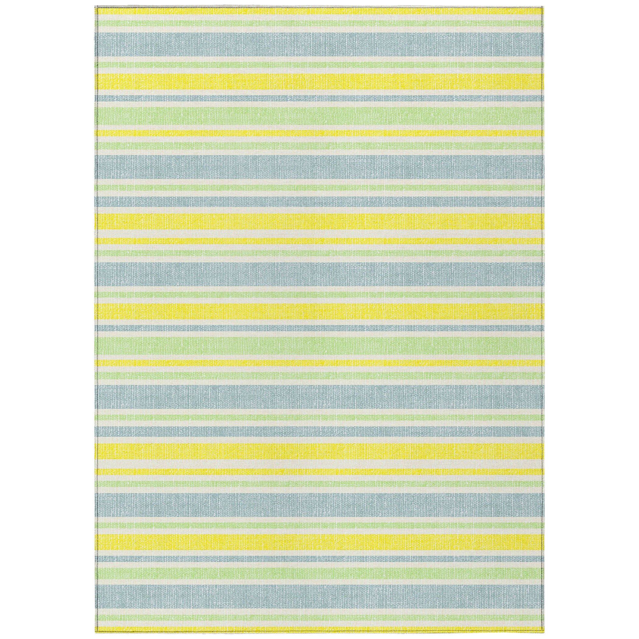 Make a bold statement in your space with our area rug featuring stripes that offer complementing colors to catch the eye and add energy to the room. This transitional striped rug effortlessly enhances any décor. It is UV stabilized for indoor or outdoor use, and its ultra-thin construction with an incorporated non-skid backing eliminates the need for a separate rug pad. Machine-washable and family and pet-friendly, this rug offers convenience and versatility.