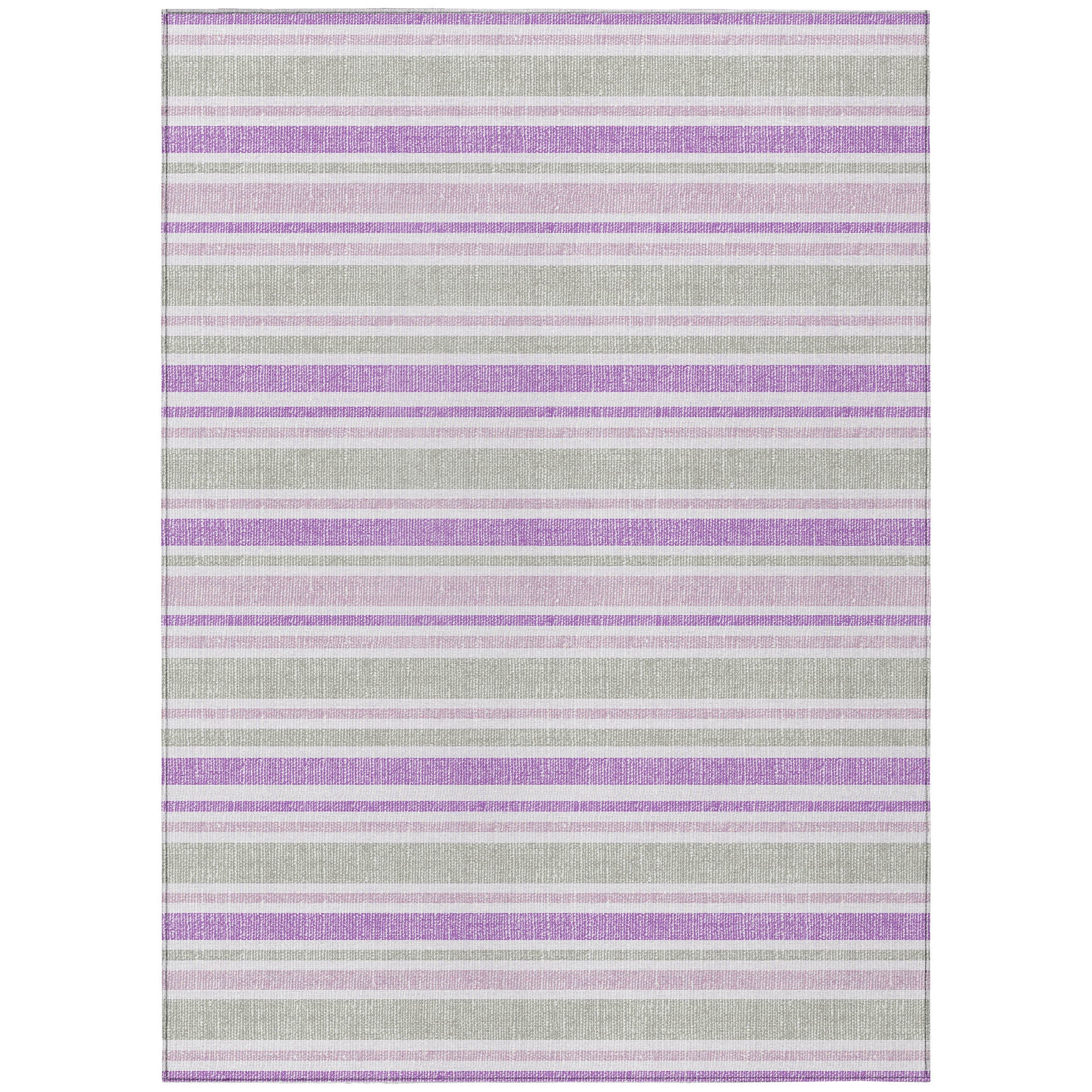 Make a bold statement in your space with our area rug featuring stripes that offer complementing colors to catch the eye and add energy to the room. This transitional striped rug effortlessly enhances any décor. It is UV stabilized for indoor or outdoor use, and its ultra-thin construction with an incorporated non-skid backing eliminates the need for a separate rug pad. Machine-washable and family and pet-friendly, this rug offers convenience and versatility.