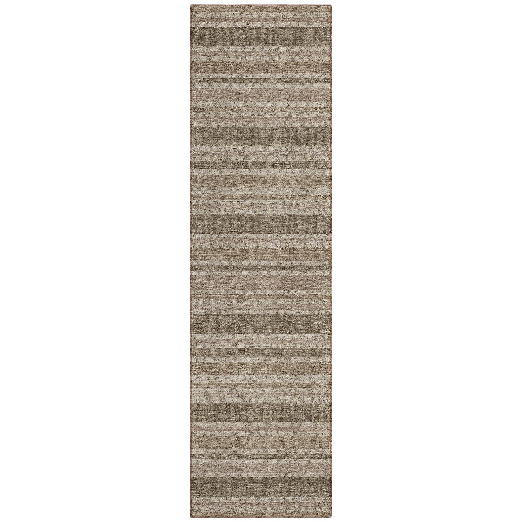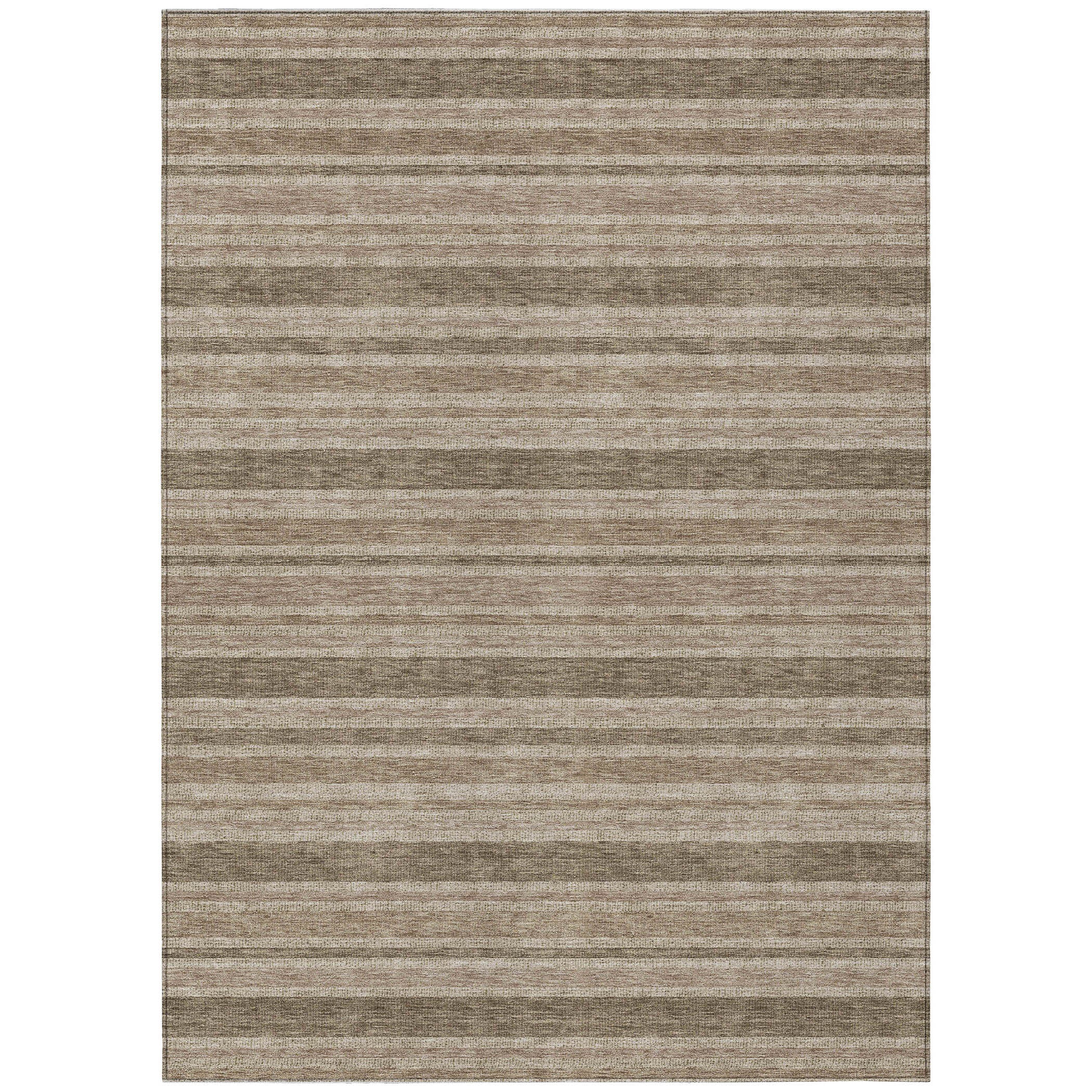 Make a bold statement in your space with our area rug featuring stripes that offer complementing colors to catch the eye and add energy to the room. This transitional striped rug effortlessly enhances any décor. It is UV stabilized for indoor or outdoor use, and its ultra-thin construction with an incorporated non-skid backing eliminates the need for a separate rug pad. Machine-washable and family and pet-friendly, this rug offers convenience and versatility.