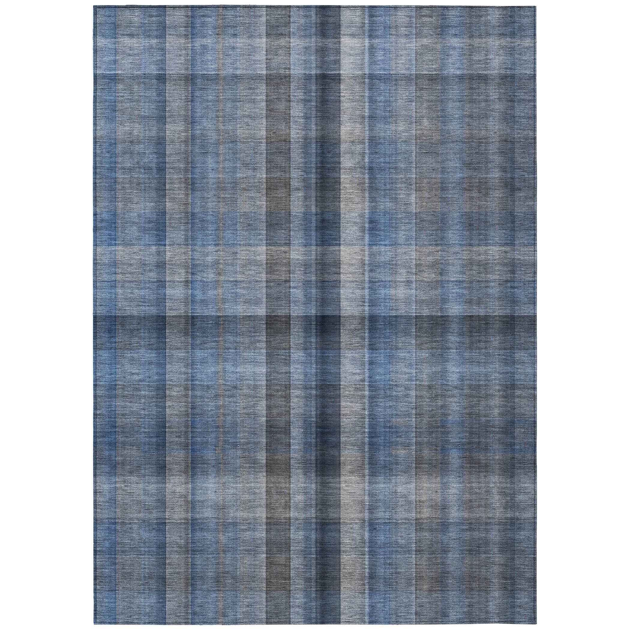 Introduce a modern charm to your home with our transitional plaid rug, boasting a grid-like pattern of squares and rectangles in bold tonal colorways. This design adds an engaging visual appeal to your spaces. Equally perfect for indoor or outdoor use with its UV stabilization, the rug is ultra-thin and has an incorporated non-skid backing, saving you from buying an additional rug pad. Being machine-washable and family and pet-friendly, it's a practical choice.