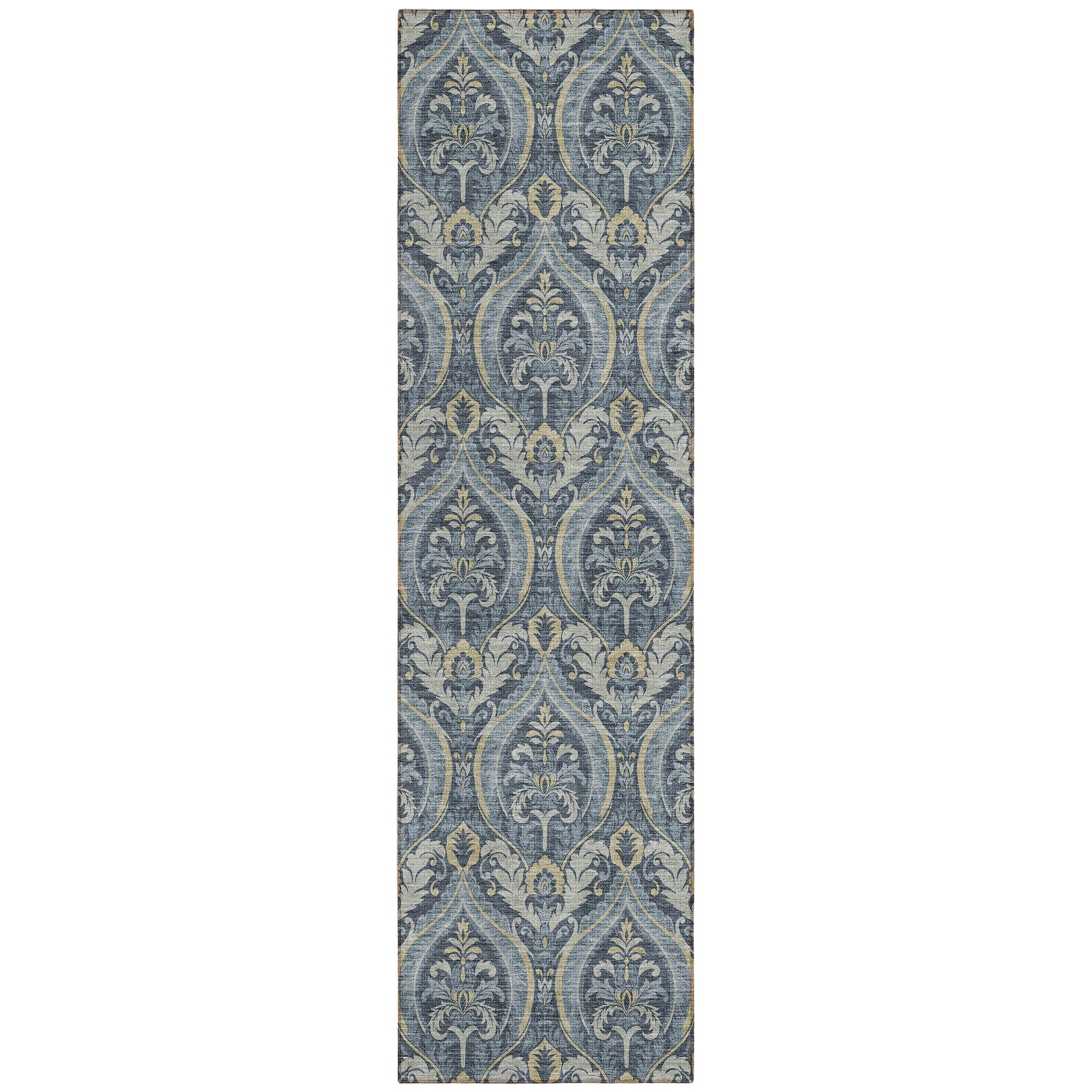 Envelop your spaces in elegance with our area rug featuring formal damask-like motifs in a uniform pattern. This transitional design creates a cohesive look that adds a sophisticated touch to any room. Its UV-stabilized material ensures suitability for both indoor and outdoor use, while the ultra-thin construction and incorporated non-skid backing make a separate rug pad redundant. Moreover, it is machine-washable, and its family and pet-friendly.