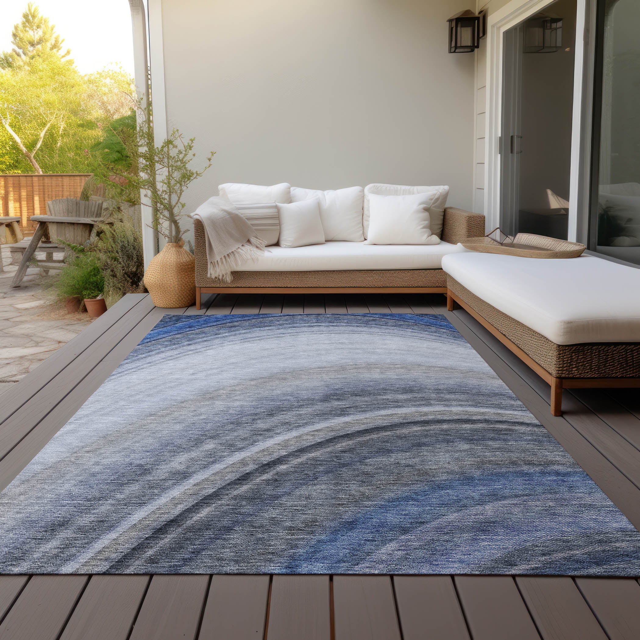 Immerse yourself in the graceful beauty of our area rug, featuring small, thin lines that come together to create a captivating multilinear wave pattern. Designed with transitional interiors in mind, it's a sublime fusion of classic and modern aesthetics. Enjoy the flexibility of UV-stabilized fabric, ideal for both indoor and outdoor settings. The ultra-thin construction incorporates a non-skid backing, eliminating the need for a separate rug pad. It's machine-washable and exceptionally family and pet-friendly, offering you ease and convenience.